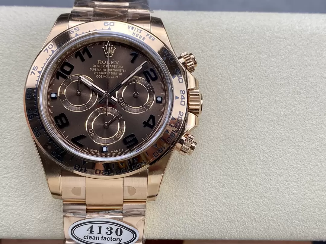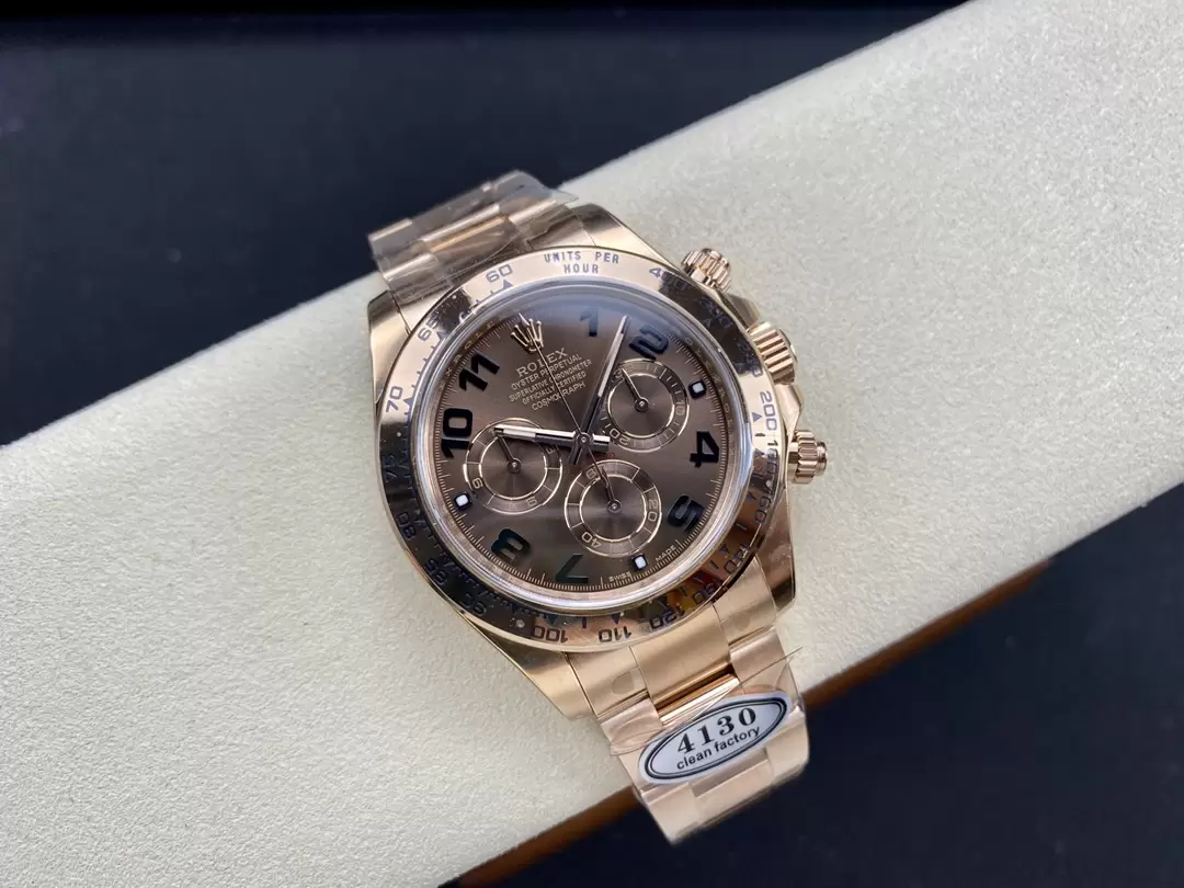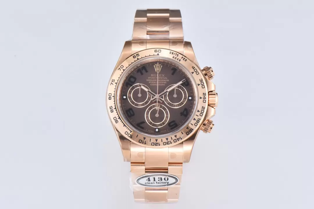 ĐỒNG HỒ NAM ROLEX DAYTONA CLEAN FACTORY REPLICA MẶT SỐ NÂU VỎ VÀNG HỒNG 40MM