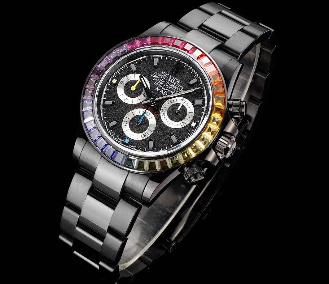 ĐỒNG HỒ NAM ROLEX DAYTONA REP 1:1 6 KIM BEZEL RAINBOW BLAKEN 40MM