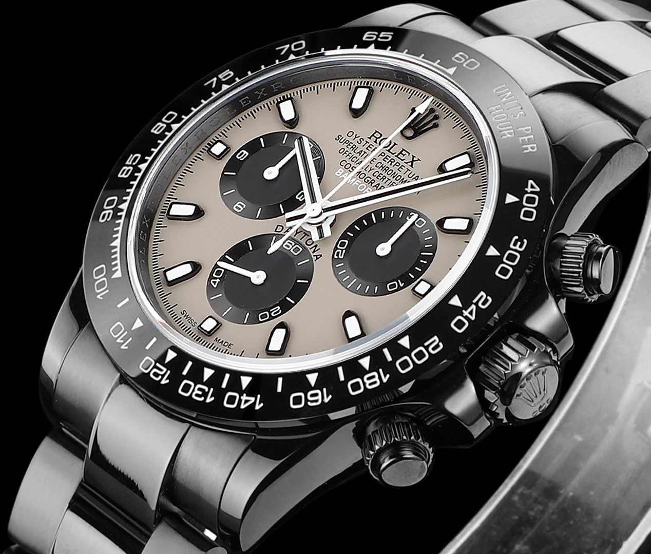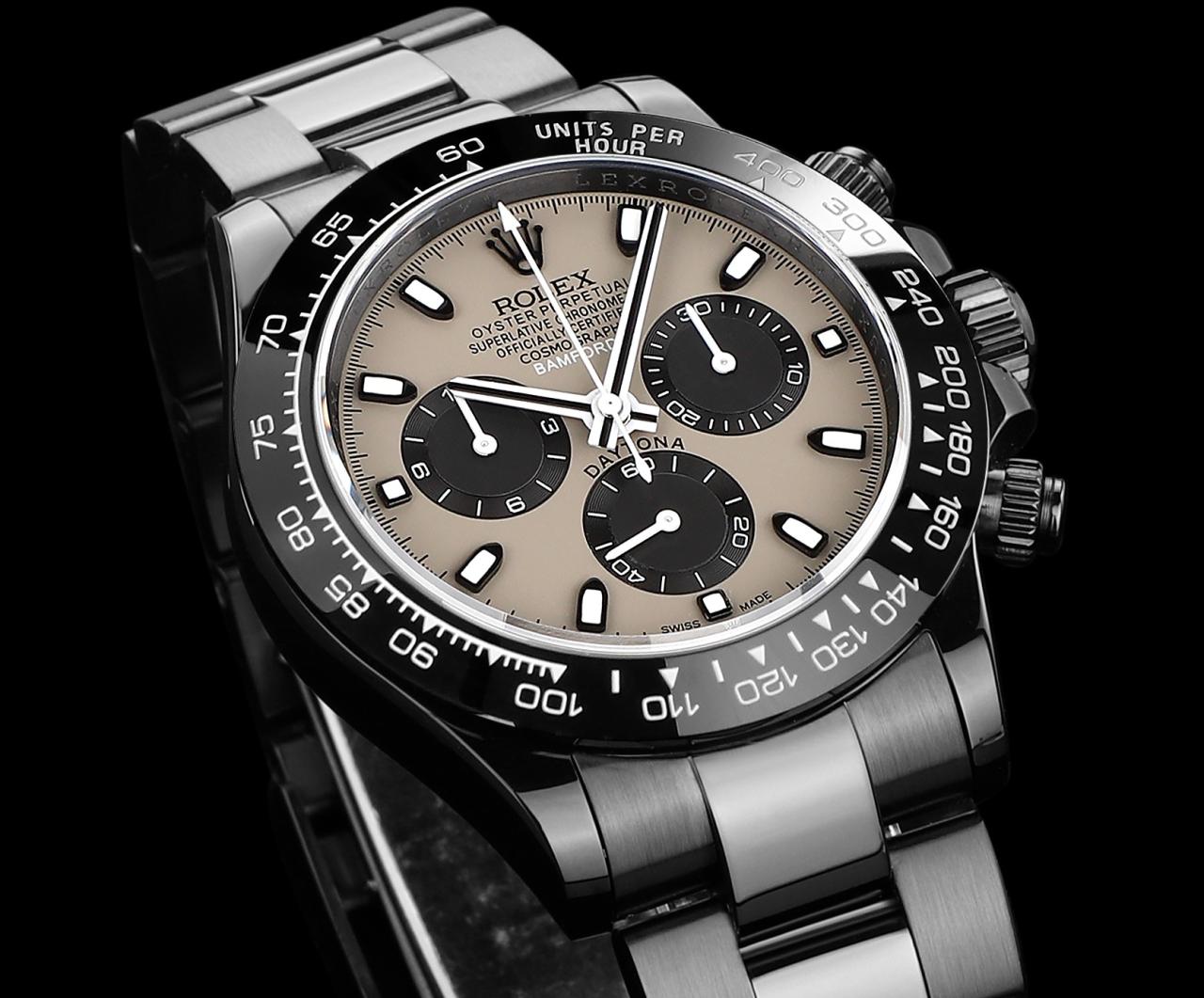ĐỒNG HỒ NAM ROLEX DAYTONA REP CAO CẤP CỌC SỐ HAI MÀU ĐEN TRẮNG 40MM