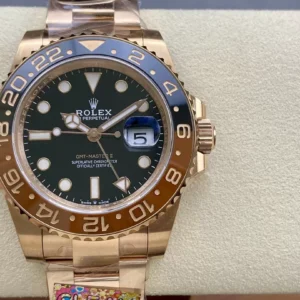 ĐỒNG HỒ NAM ROLEX GMT-MASTER II REP CAO CẤP MẶT SỐ ĐEN VỎ VÀNG HỒNG 40MM