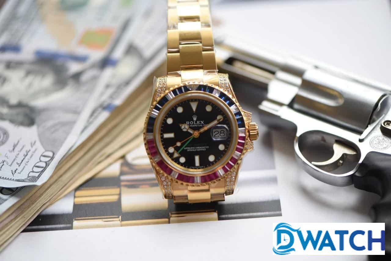 ĐỒNG HỒ NAM ROLEX GMT-MASTER ll MÁY CƠ DÂY KIM LOẠI ĐÍNH ĐÁ REPLICA 1:1 40MM
