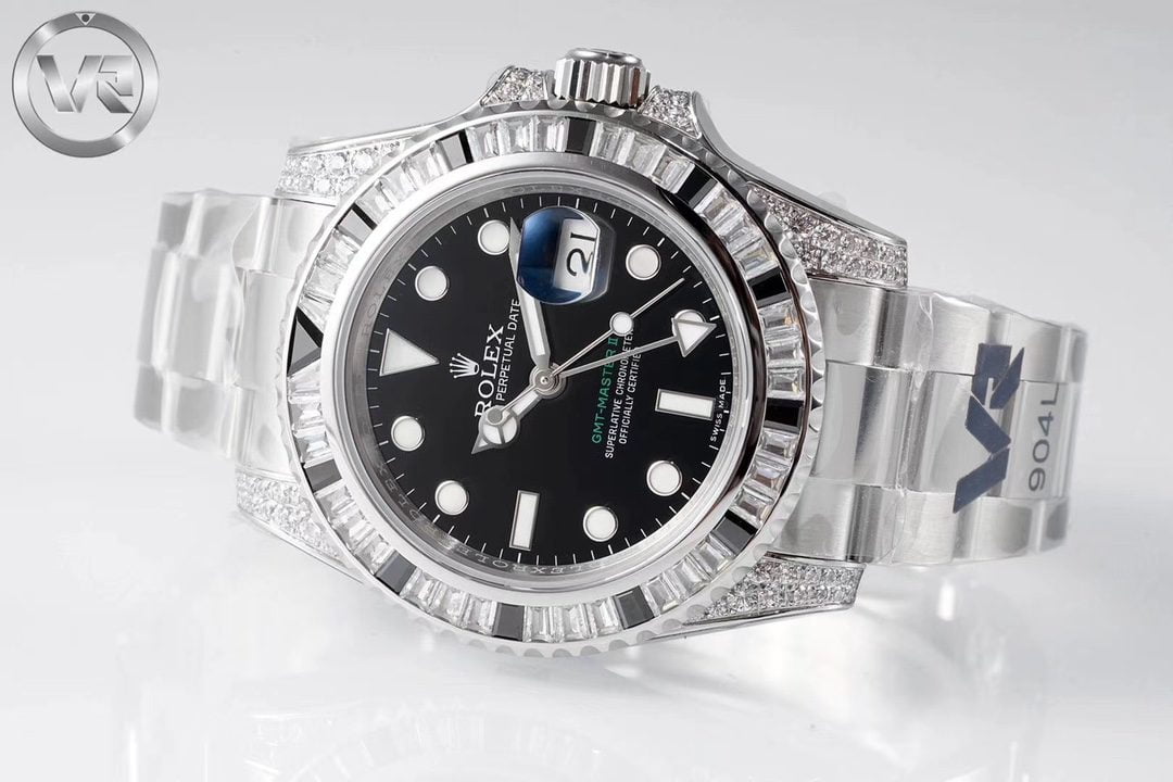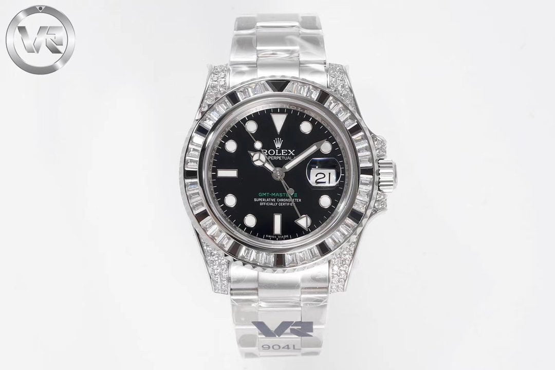 ĐỒNG HỒ NAM ROLEX GMT-MASTER ll REPLICA CAO CẤP MẶT SỐ ĐEN ĐÍNH ĐÁ 40MM