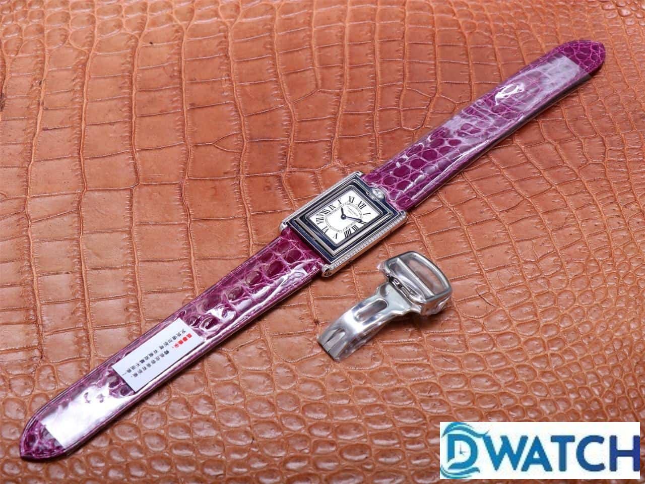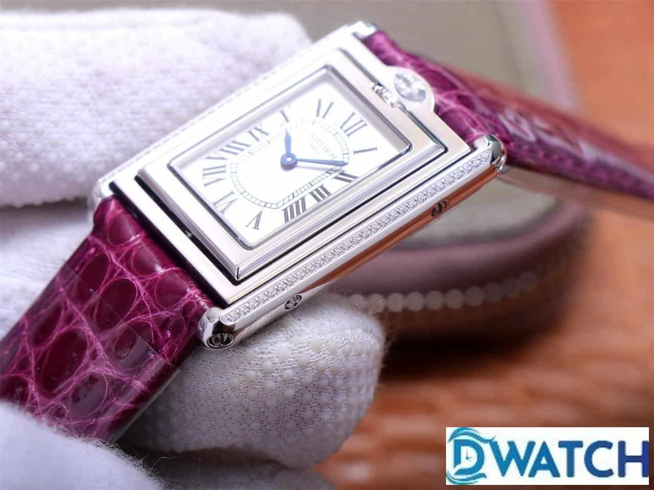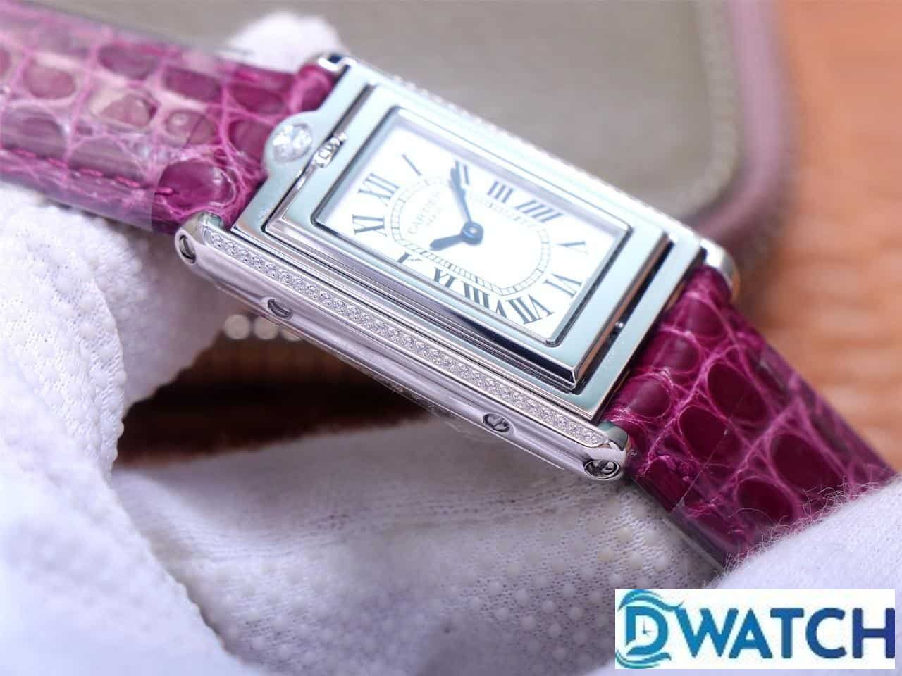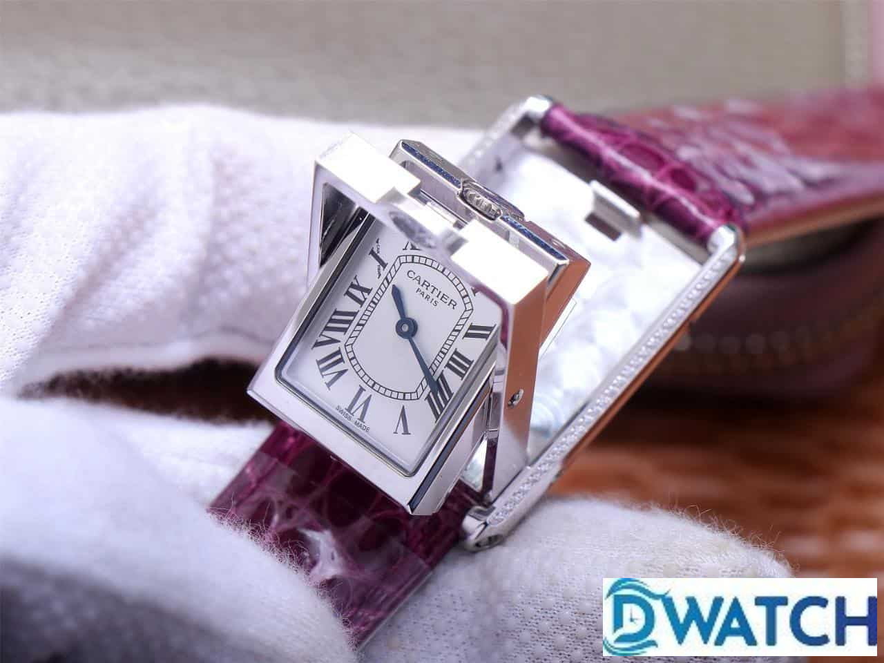 ĐỒNG HỒ NỮ CARTIER TANK BASCULANTE FAKE 1:1 NHÀ MÁY AW DÂY DA TÍM 31MM
