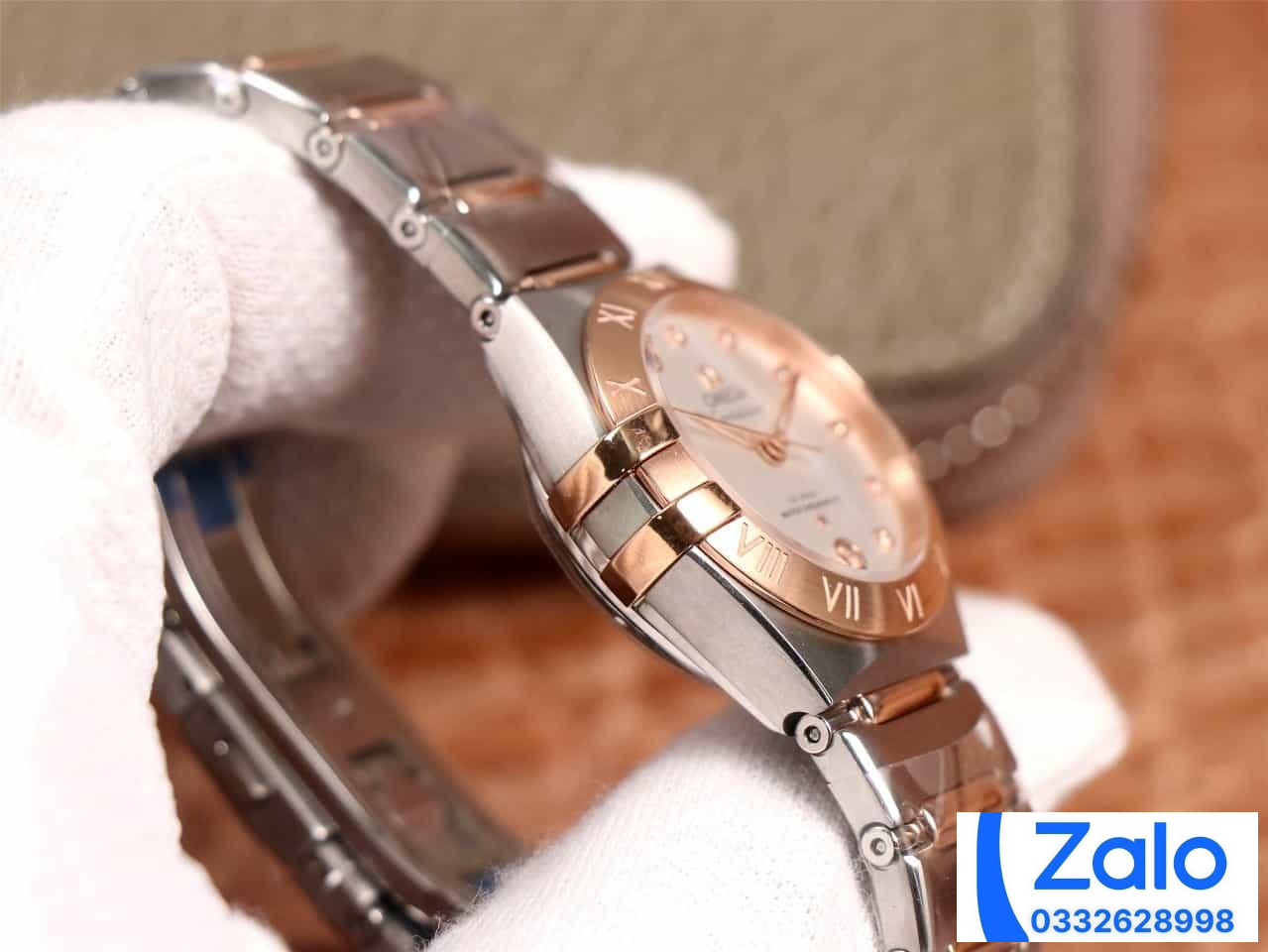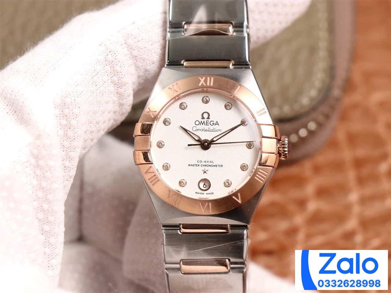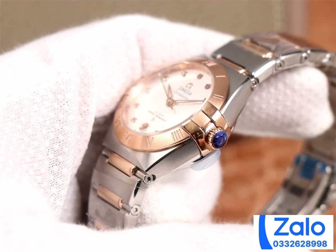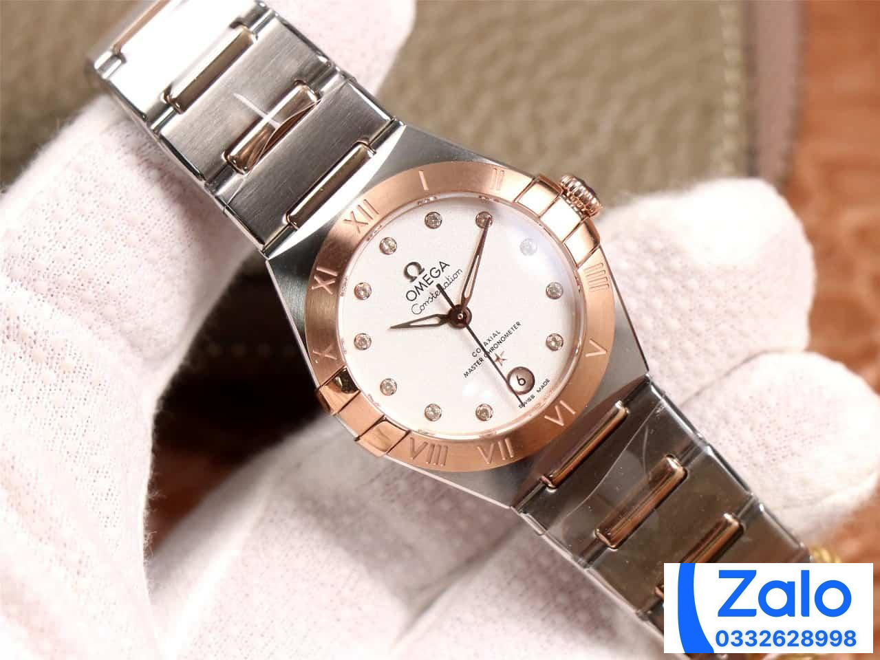 ĐỒNG HỒ NỮ OMEGA CONSTELLATION FAKE 1:1 NHÀ MÁY 3S CỌC SỐ ĐÍNH ĐÁ 29MM