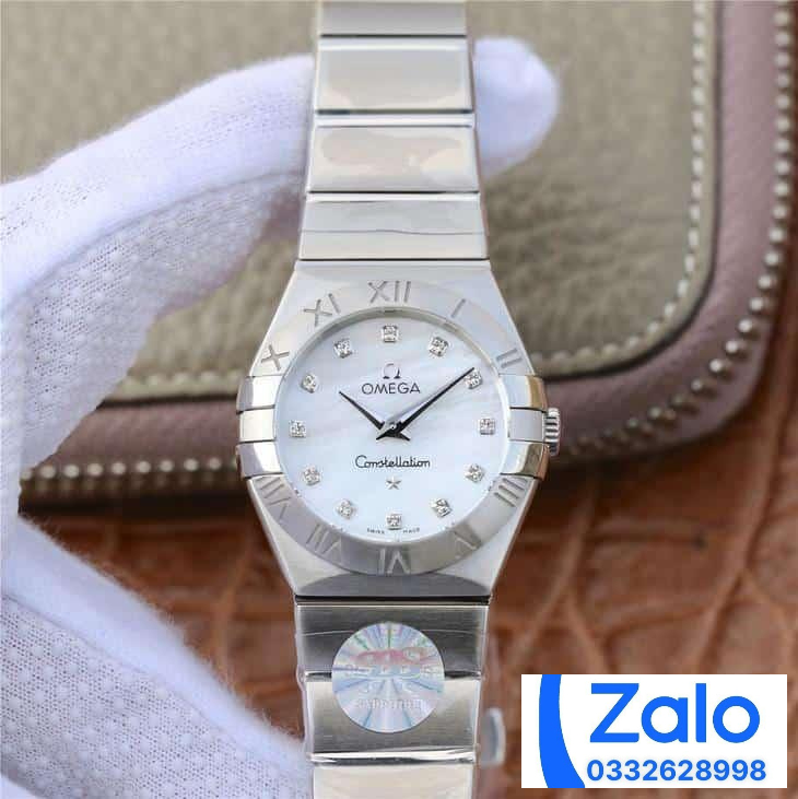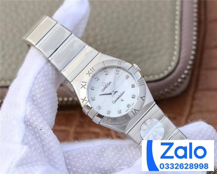 ĐỒNG HỒ NỮ OMEGA CONSTELLATION FAKE 11 NHÀ MÁY 3S CỌC SỐ ĐÍNH ĐÁ 27MM