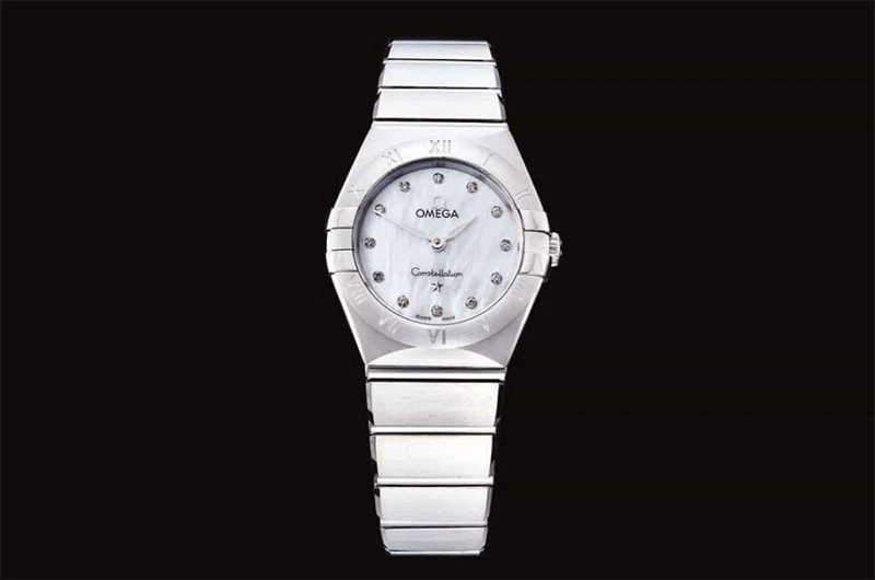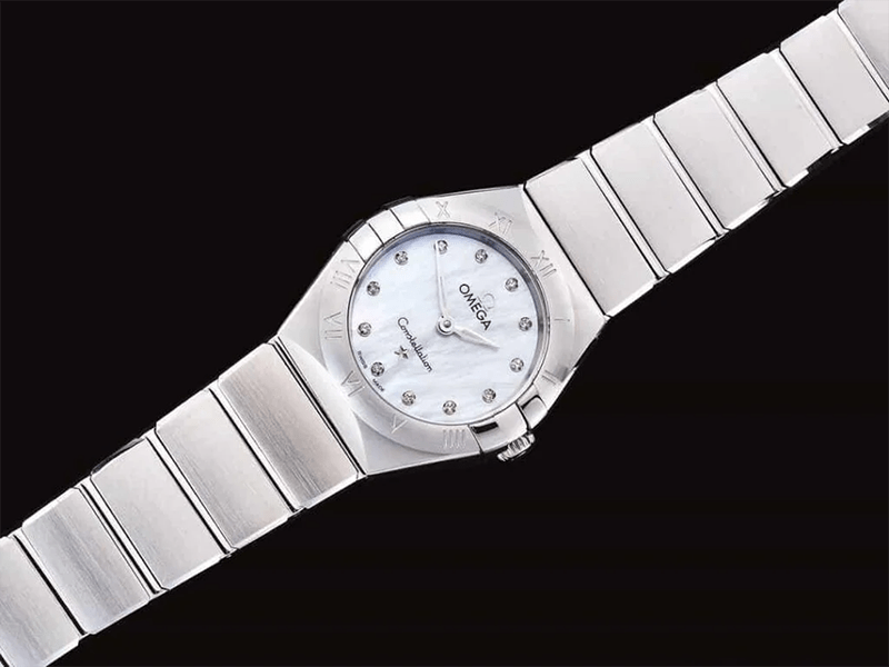 ĐỒNG HỒ NỮ OMEGA CONSTELLATION MẶT TRẮNG DÂY THÉP REPLICA CAO CẤP 25MM