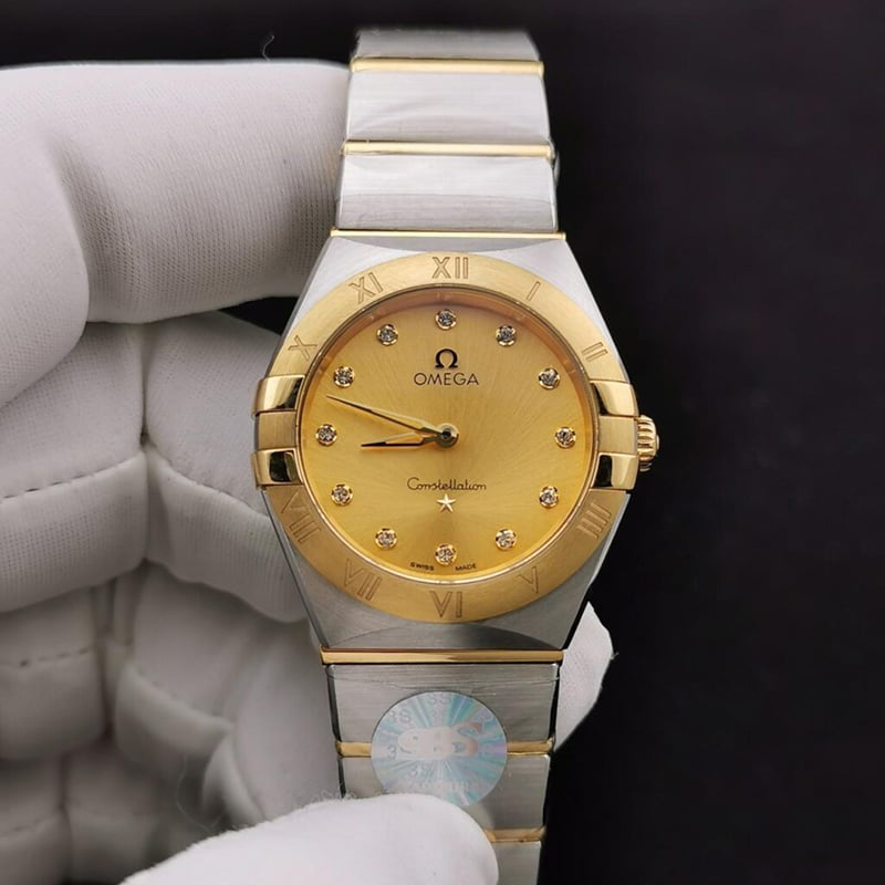 ĐỒNG HỒ NỮ OMEGA CONSTELLATION MẶT VÀNG TRƠN REPLICA 28MM