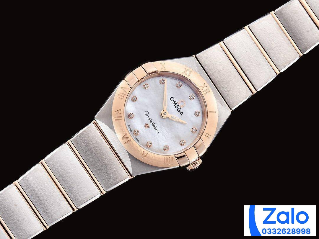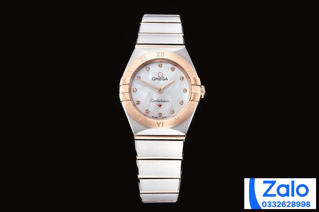 ĐỒNG HỒ NỮ OMEGA CONSTELLATION SUPER FAKE NHÀ MÁY GF CỌC SỐ ĐÍNH ĐÁ 25MM