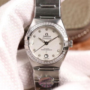 ĐỒNG HỒ NỮ OMEGA CONSTELLATION VIỀN ĐÁ DÂY THÉP REPLICA 29MM
