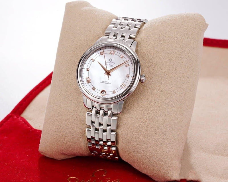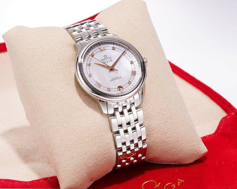 ĐỒNG HỒ NỮ OMEGA DE VILLE DÂY THÉP THỜI TRANG REPLICA 32.7MM