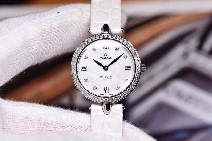 ĐỒNG HỒ NỮ OMEGA DE VILLE FAKE 11 NHÀ MÁY 3S VIỀN ĐÍNH ĐÁ TRẮNG 27MM