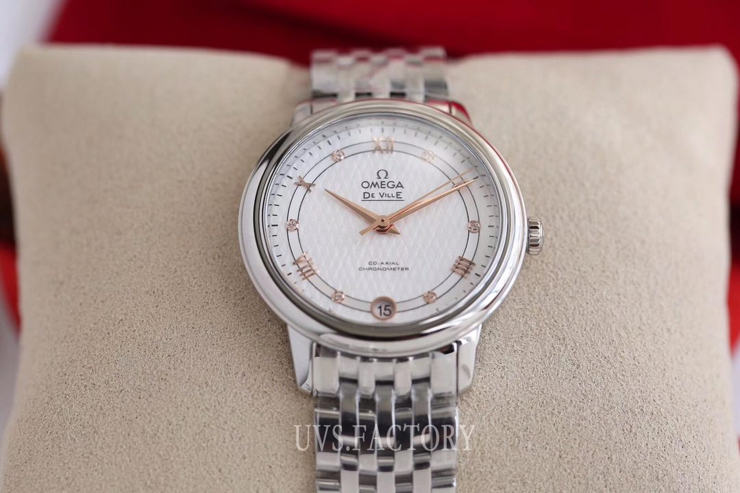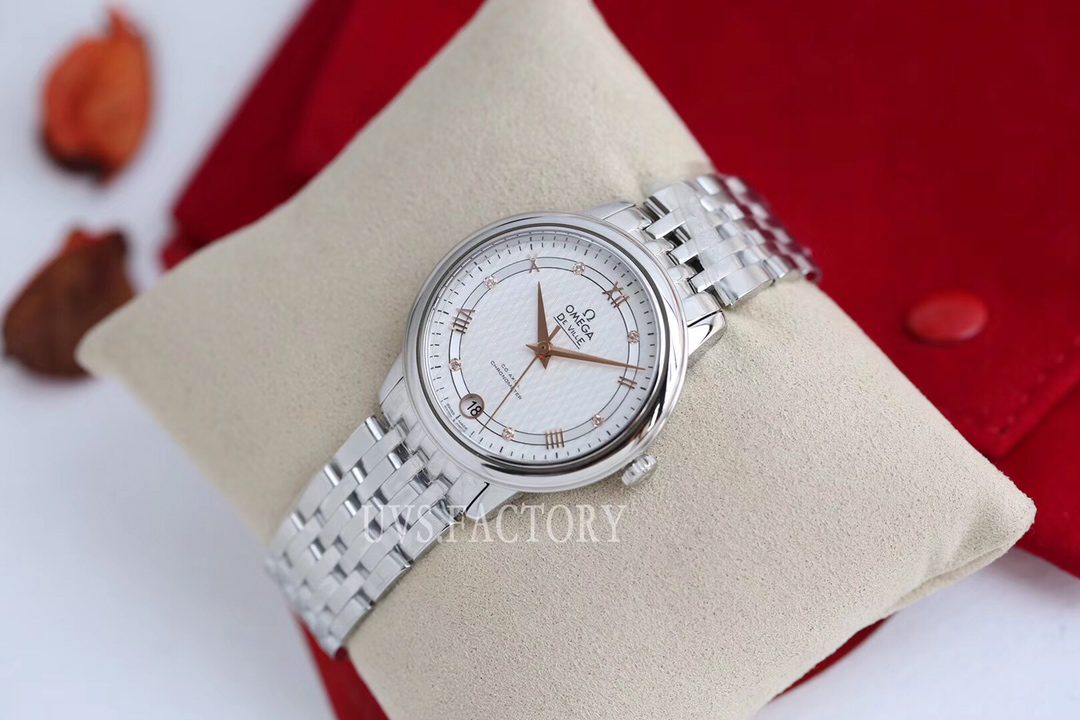 ĐỒNG HỒ NỮ OMEGA DE VILLE FAKE 11 NHÀ MÁY UVS KIM CHỈ VÀNG HỒNG 32MM