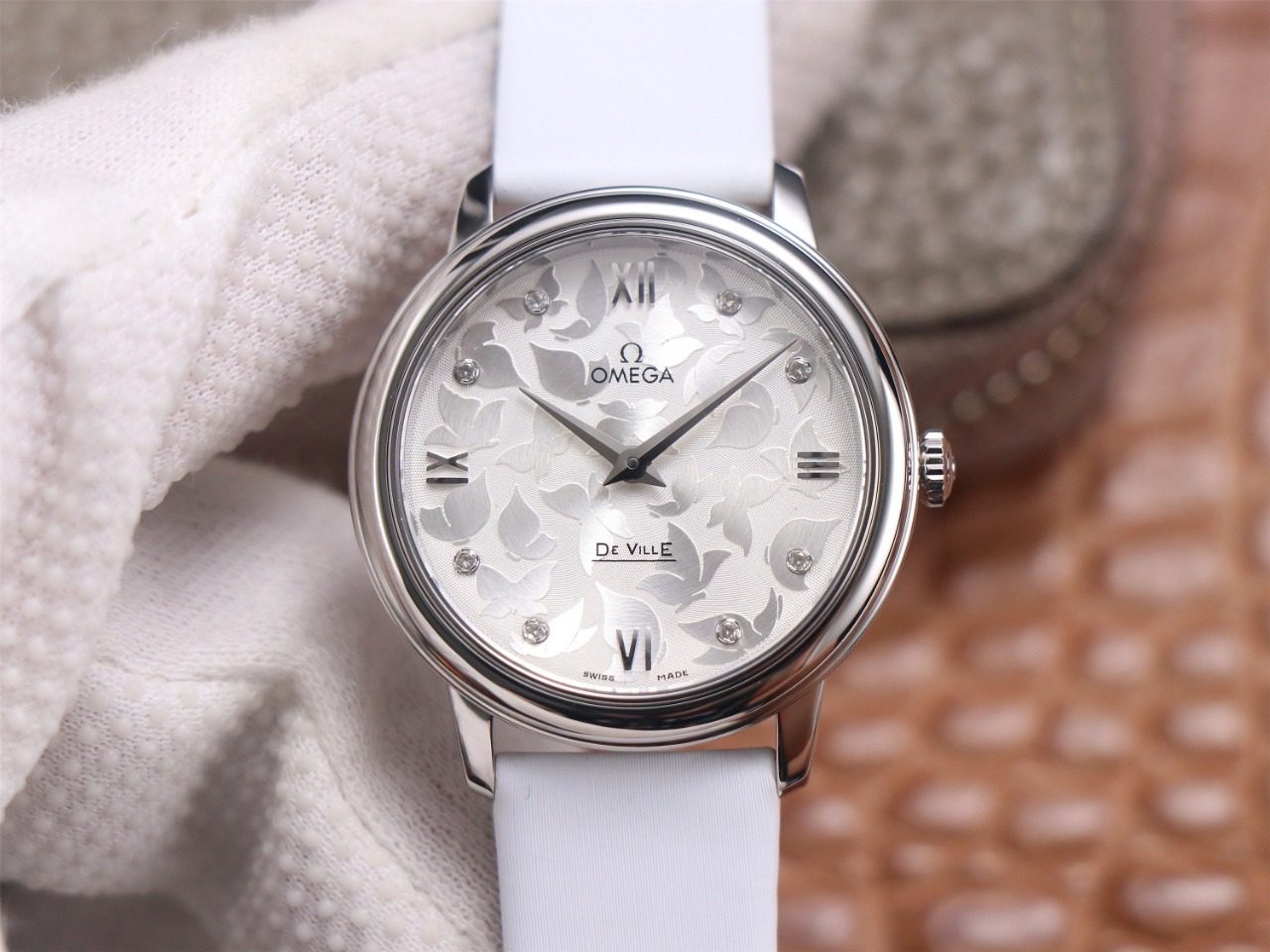 ĐỒNG HỒ NỮ OMEGA DE VILLE FAKE CAO CẤP NHÀ MÁY 3S MẶT SỐ HÌNH BƯỚM 32.7MM