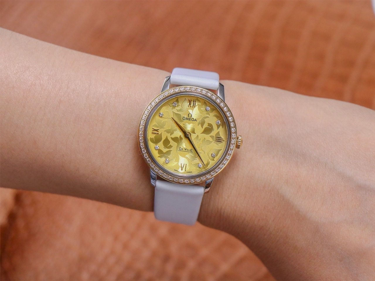 ĐỒNG HỒ NỮ OMEGA DE VILLE SUPER FAKE NHÀ MÁY 3S ĐÍNH ĐÁ NỔI BẬT 32.7MM
