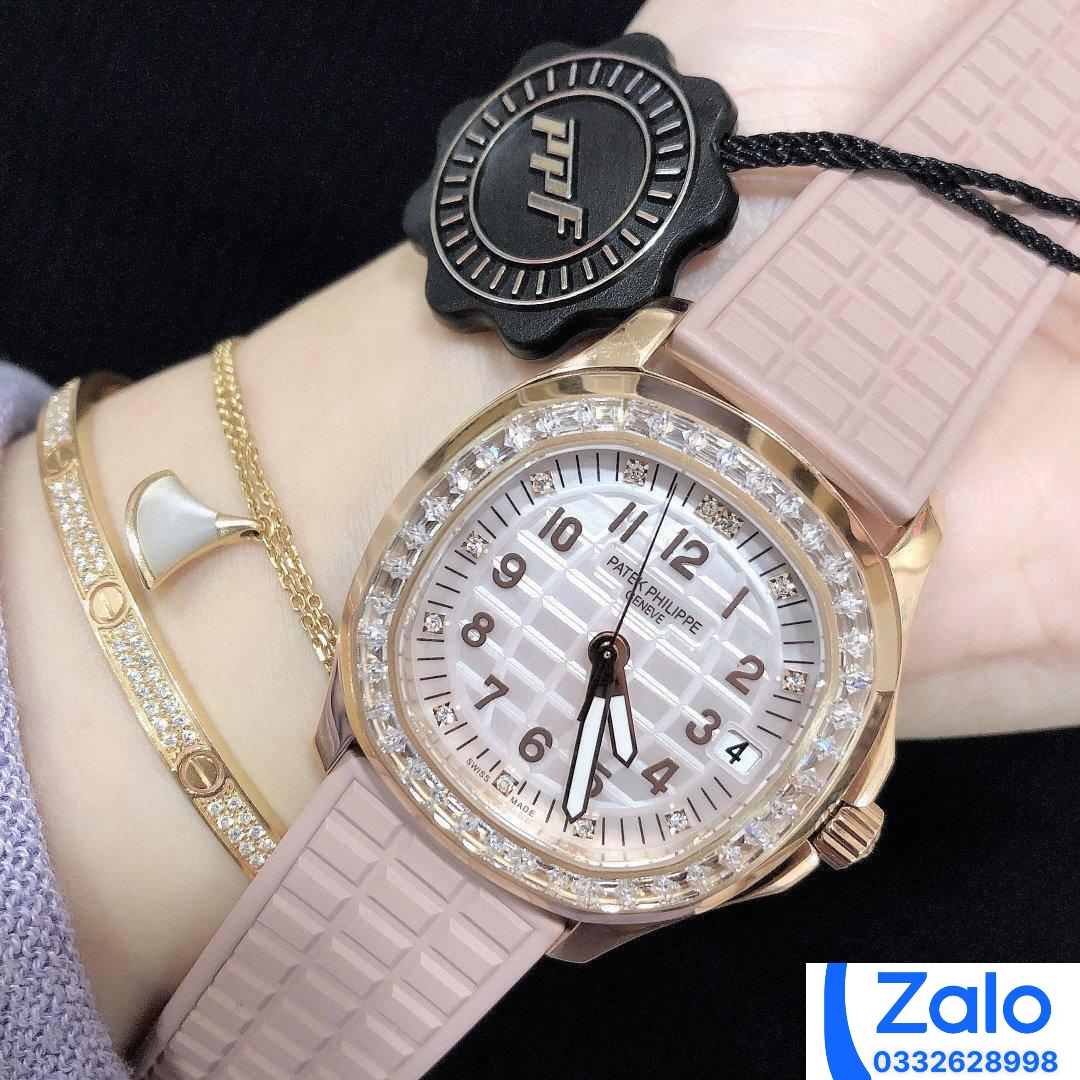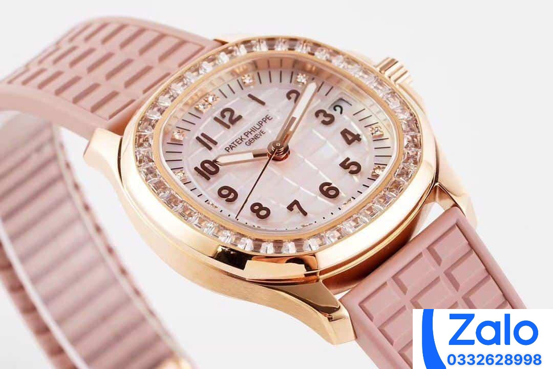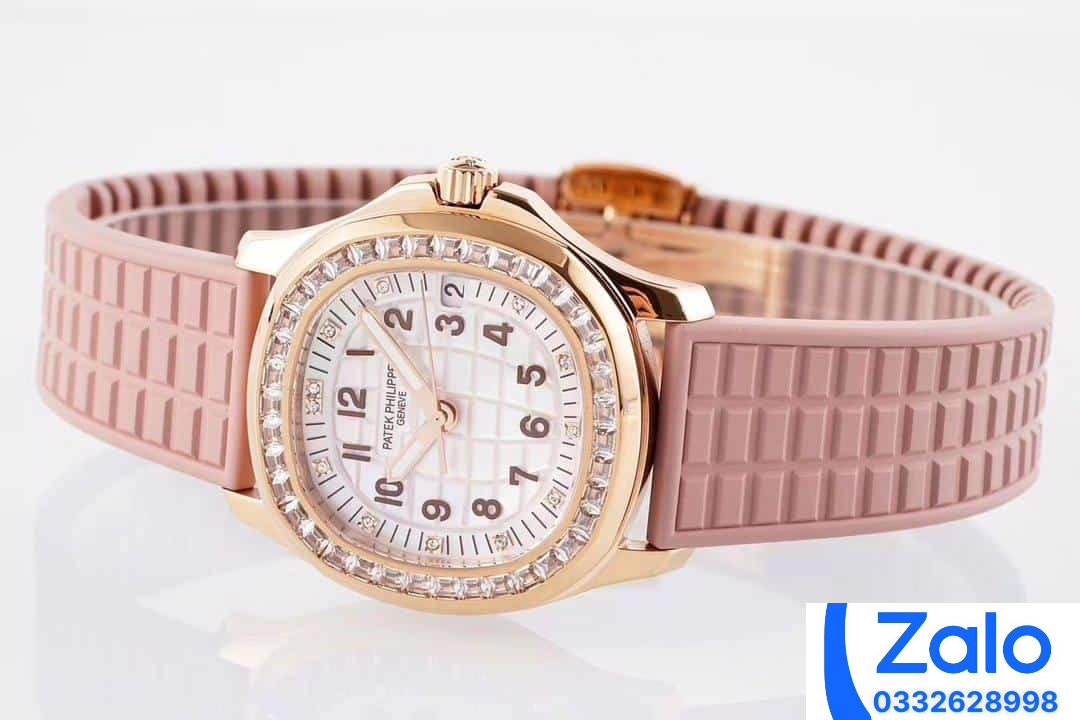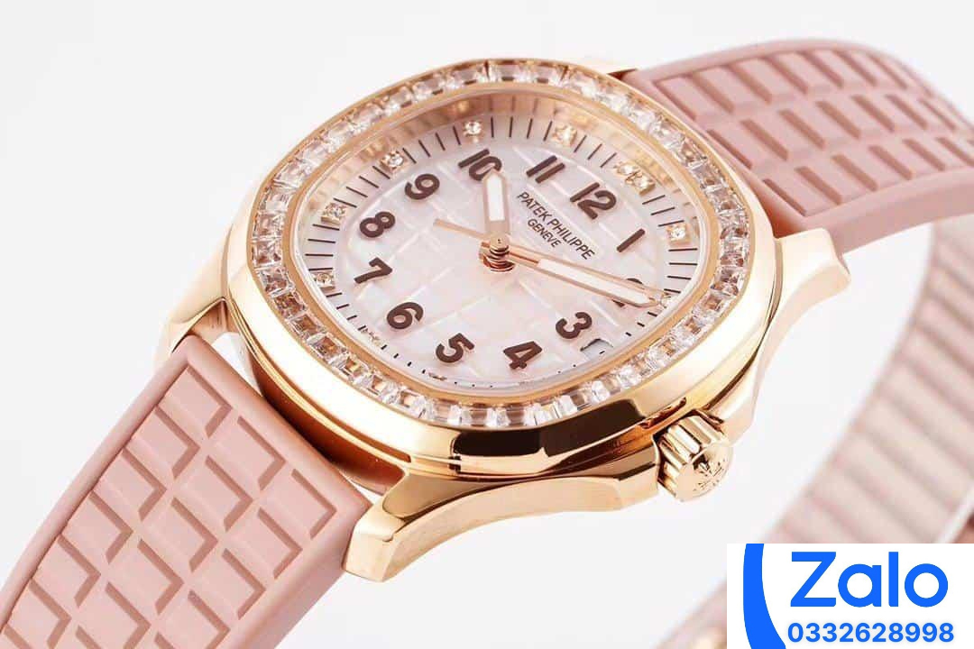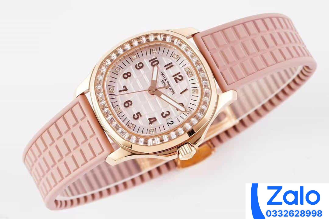 ĐỒNG HỒ NỮ PATEK PHILIPPE AQUANAUT 5072G REPLICA 1:1 MÀU HỒNG ĐÍNH ĐÁ PPF 35.6MM
