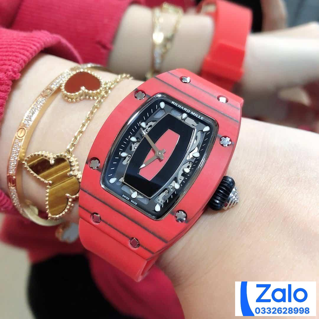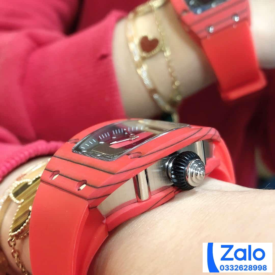 ĐỒNG HỒ NỮ RICHARD MILLE RM007-01 FAKE 11 VỎ ĐỎ DÂY CAO SU ĐỎ 36MM