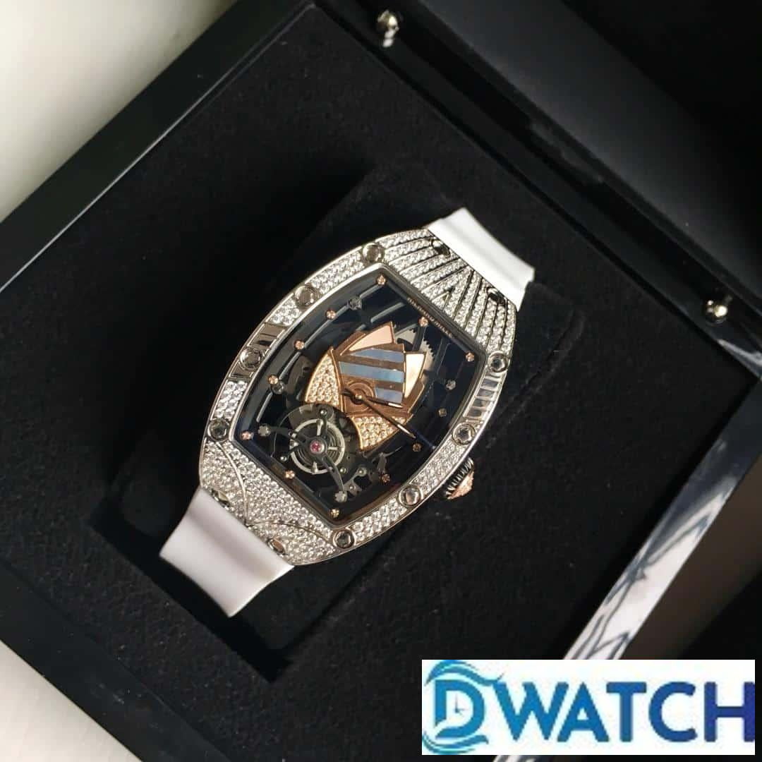 ĐỒNG HỒ NỮ RICHARD MILLE RM71-01 FAKE 1:1 ĐÍNH ĐÁ DÂY CAO SU 34MM