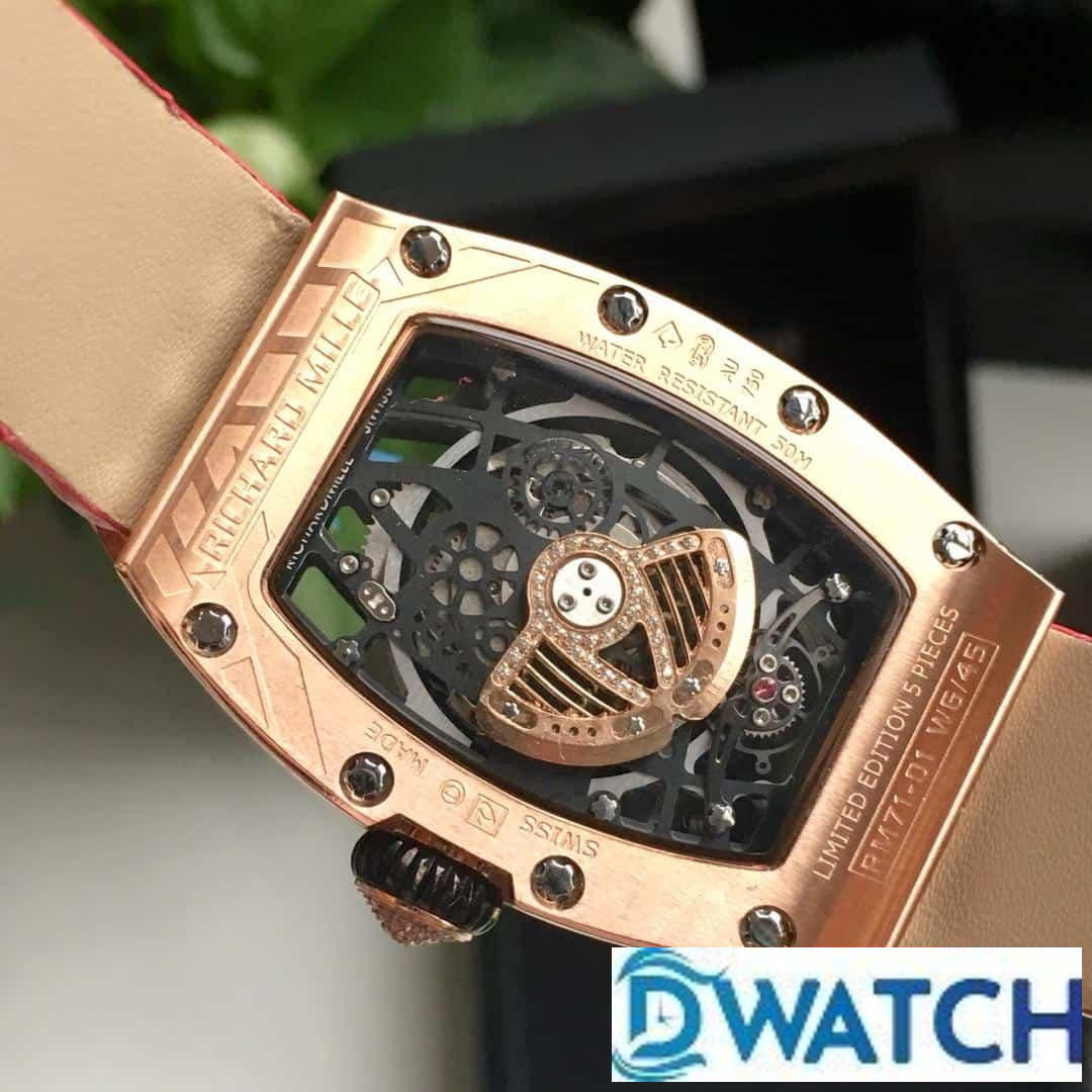 ĐỒNG HỒ NỮ RICHARD MILLE RM71-01 SUPER FAKE ĐÍNH ĐÁ DÂY DA 34MM