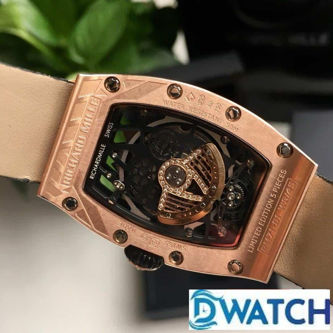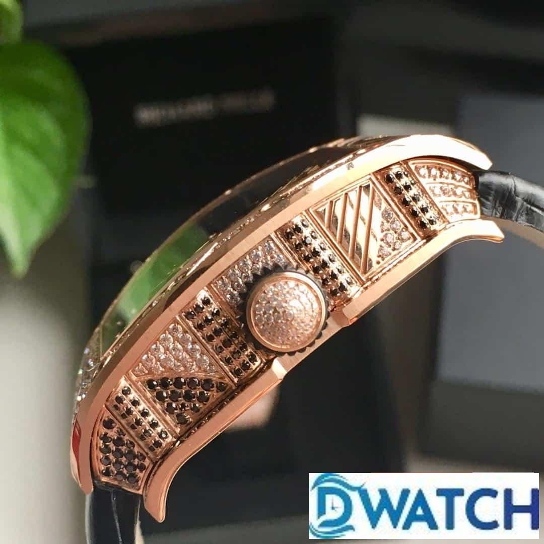 ĐỒNG HỒ NỮ RICHARD MILLE RM71-01 FAKE CAO CẤP DÂY DA ĐÍNH ĐÁ VÀNG HỒNG 34MM