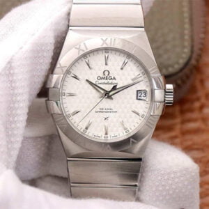 ĐỒNG HỒ OMEGA CONSTELLATION MẶT TRẮNG DÂY THÉP REPLICA 38MM