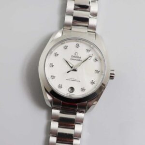 Đặt mua ĐỒNG HỒ OMEGA OMEGA AQUA TERRA DIAL TRẮNG CỌC SỐ DIAMOND DÂY KIM LOẠI REPLICA CAO CẤP 34 MM