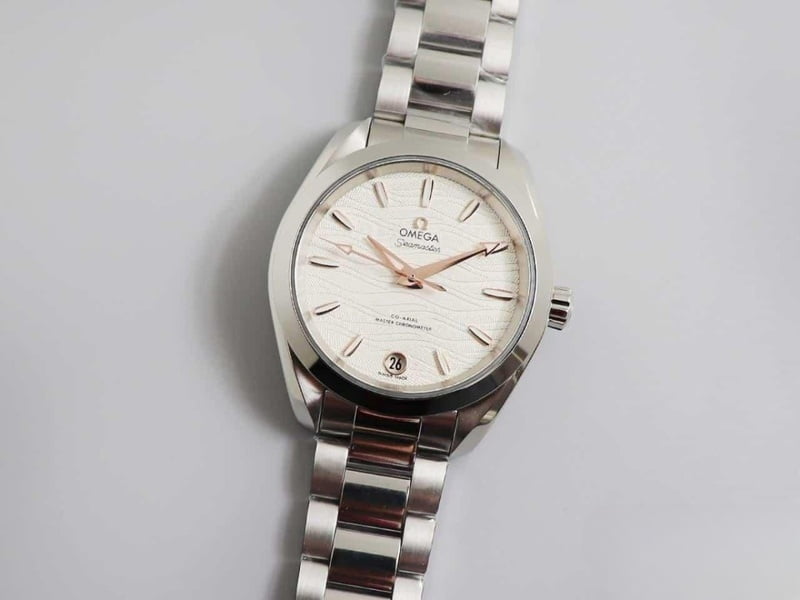 ĐỒNG HỒ OMEGA OMEGA AQUA TERRA DIAL TRẮNG KIM ROSE GOLD DÂY KIM LOẠI REPLICA CAO CẤP 34 MM