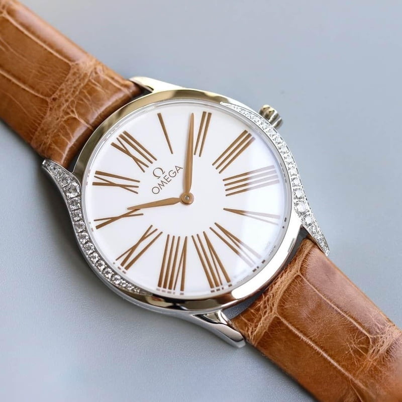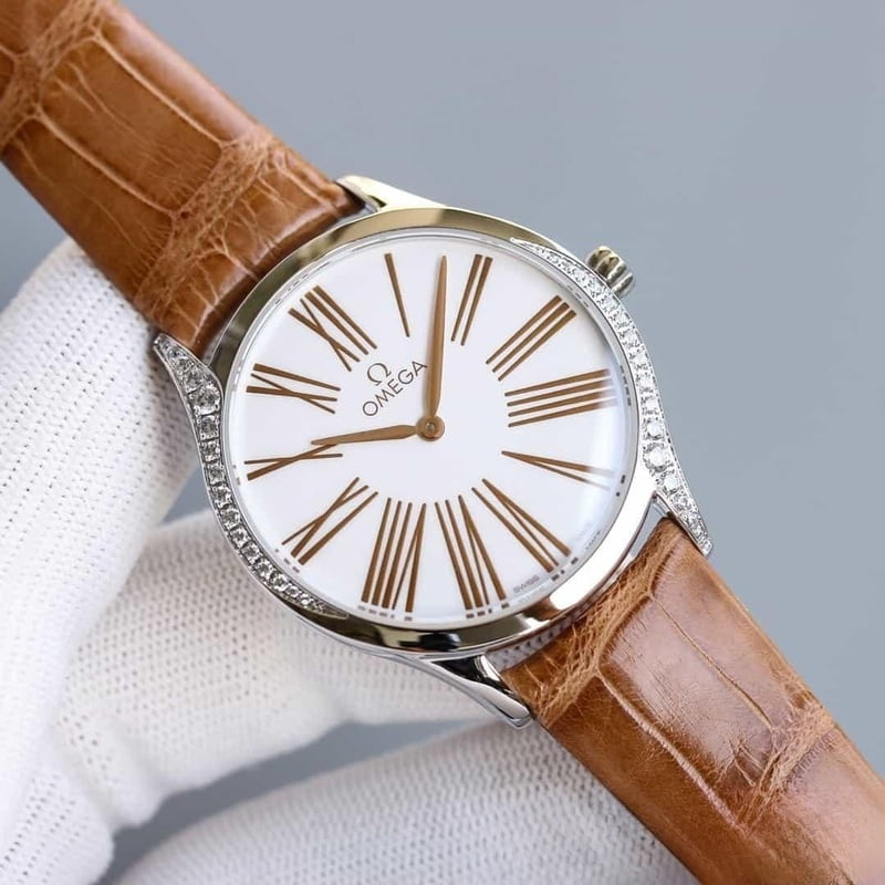ĐỒNG HỒ OMEGA OMEGA DE VILLE CLASSIC SERIES ROYAL WHITE SILVER DÂY DA CÁ SẤU REPLICA CAO CẤP 36 MM