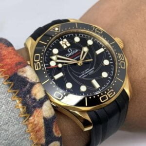 ĐỒNG HỒ OMEGA SEAMASTER FACTORY VS DÂY CAO SU GOLD BLACK REPLICA CAO CẤP 42MM