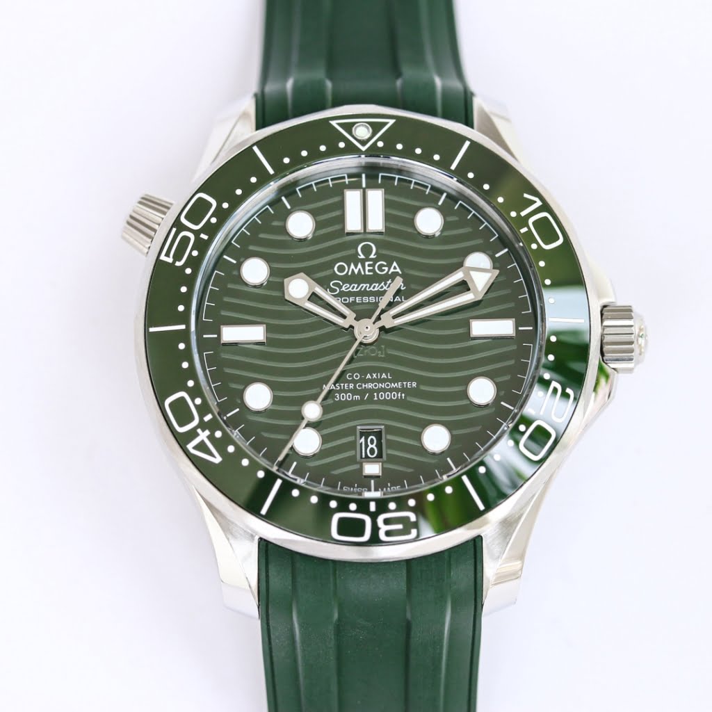 ĐỒNG HỒ OMEGA SEAMASTER FAKE CAO CẤP NAM DÂY CAO SU MÀU XANH LÁ CÂY ORF 42MM