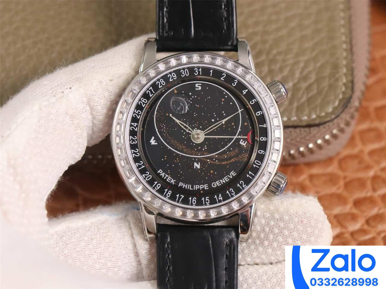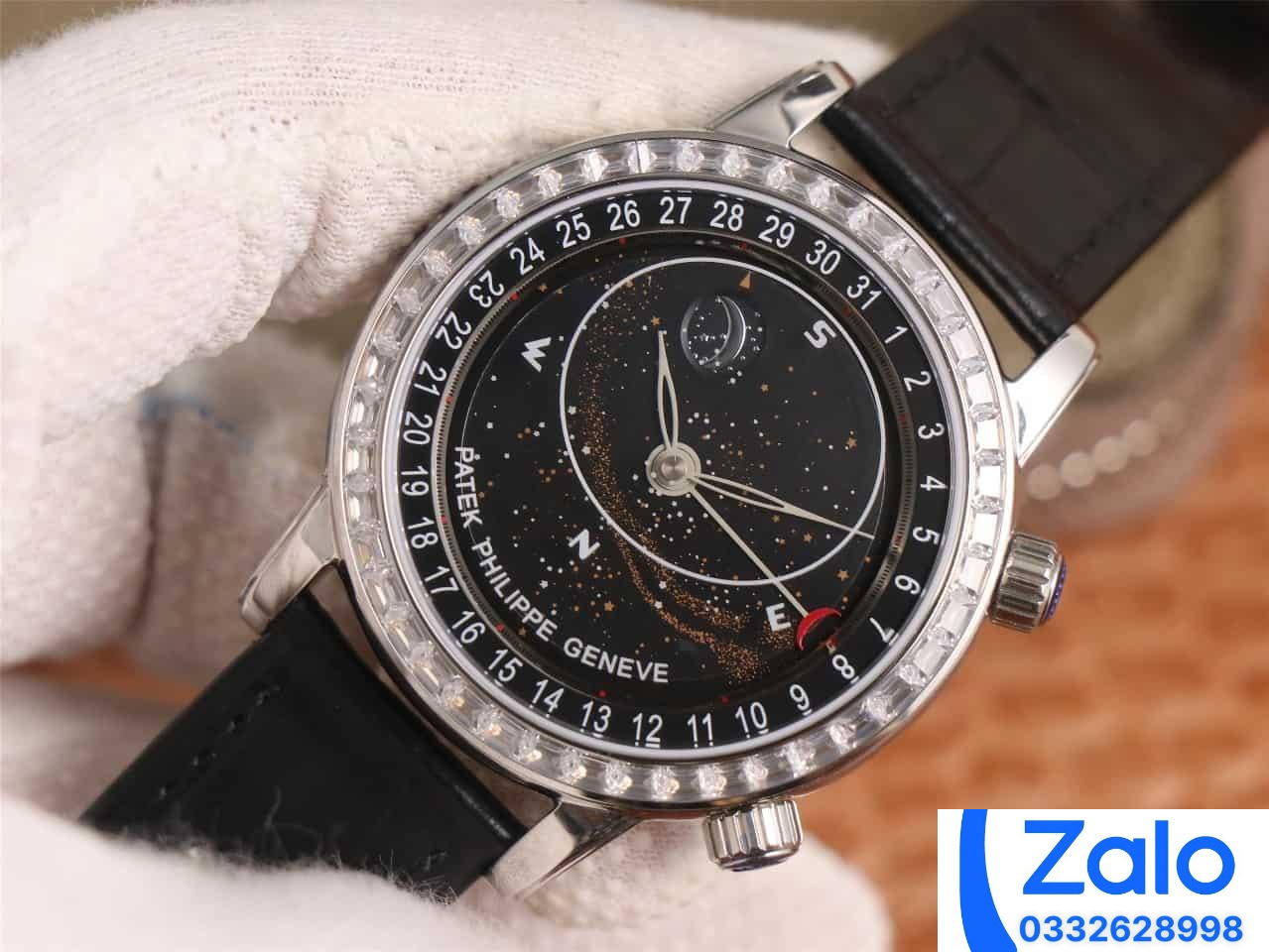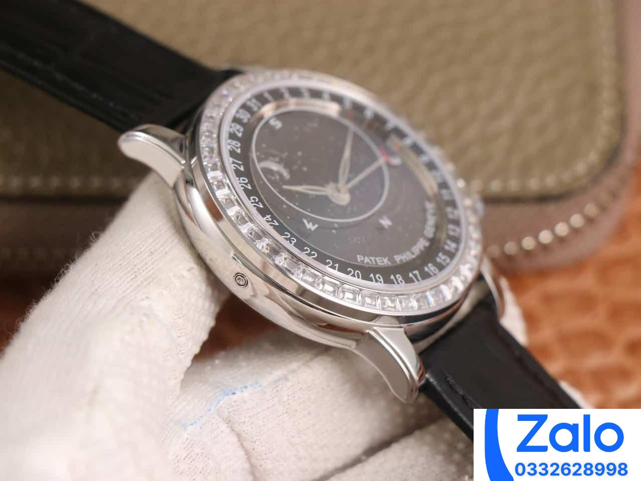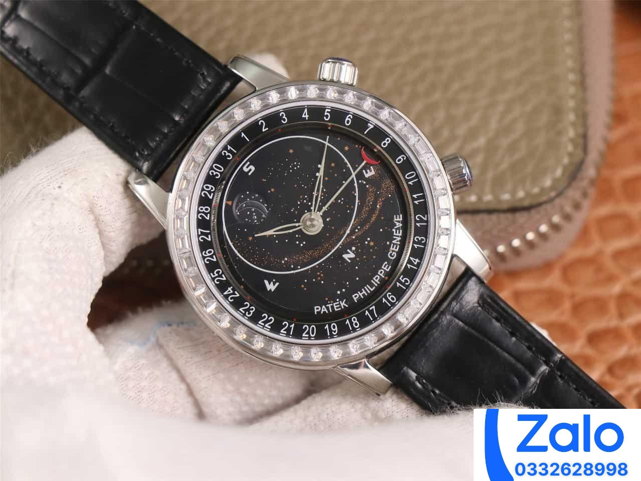 ĐỒNG HỒ PATEK PHILIPPE GRAND COMPLICATION 6104G MÀU ĐEN ĐÍNH ĐÁ REPLICA 1:1 40MM