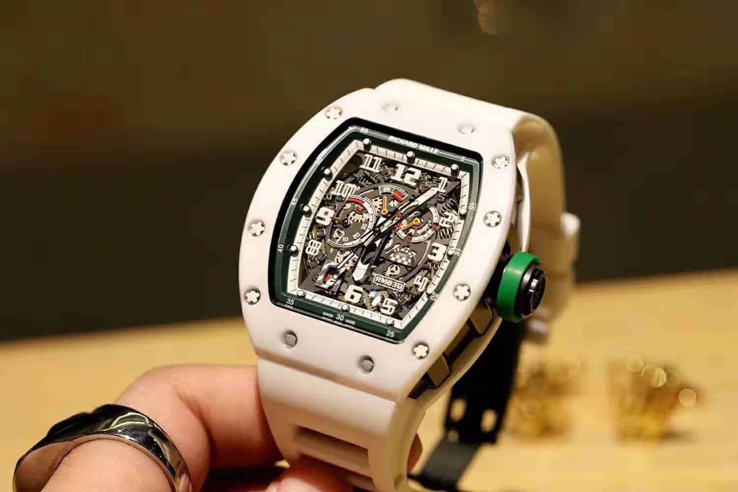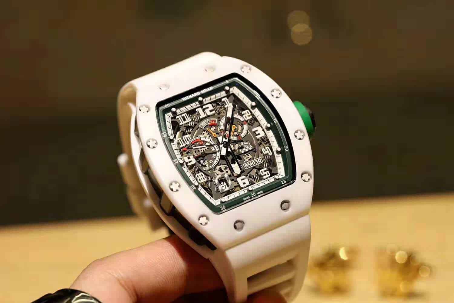 ĐỒNG HỒ NAM RICHARD MILLE RM030 HAI MÀU TRẮNG XANH FAKE 11 43X50MM