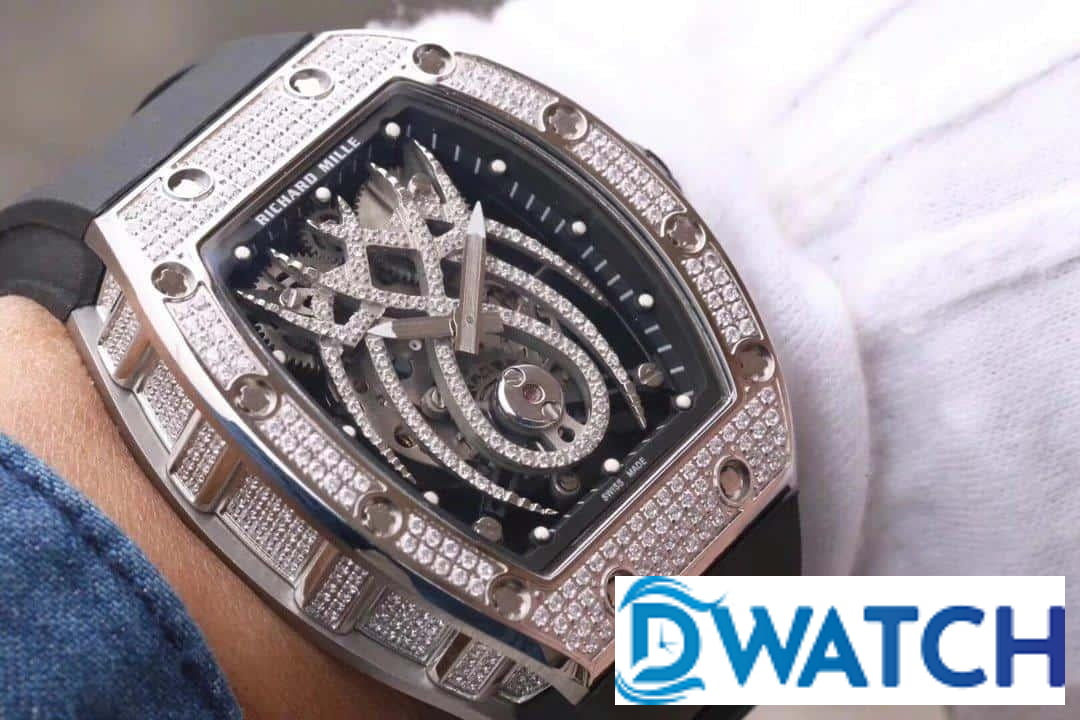 ĐỒNG HỒ NAM RICHARD MILLE RM1901 MẶT SỐ NHỆN ĐÍNH ĐÁ FAKE 11 44X50MM