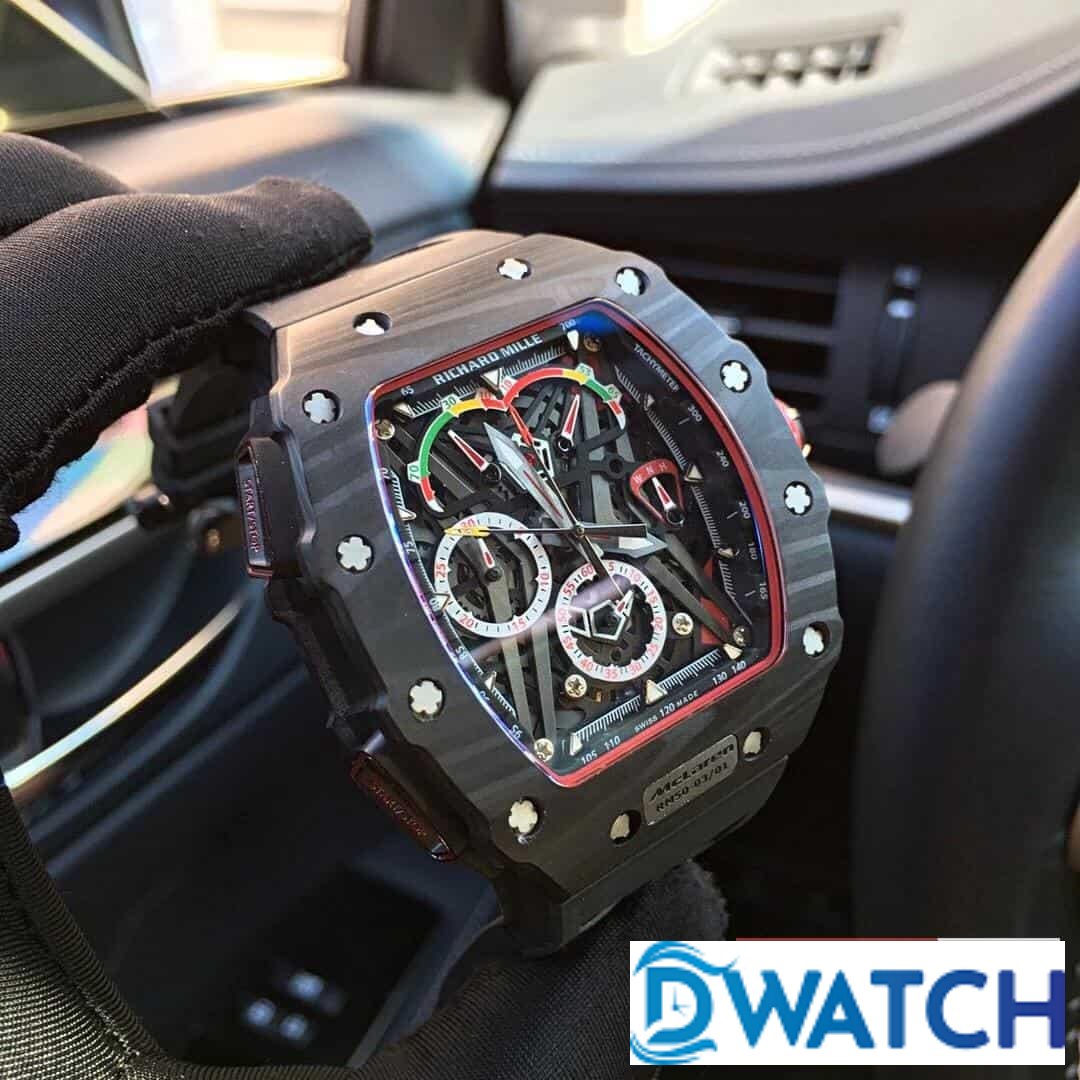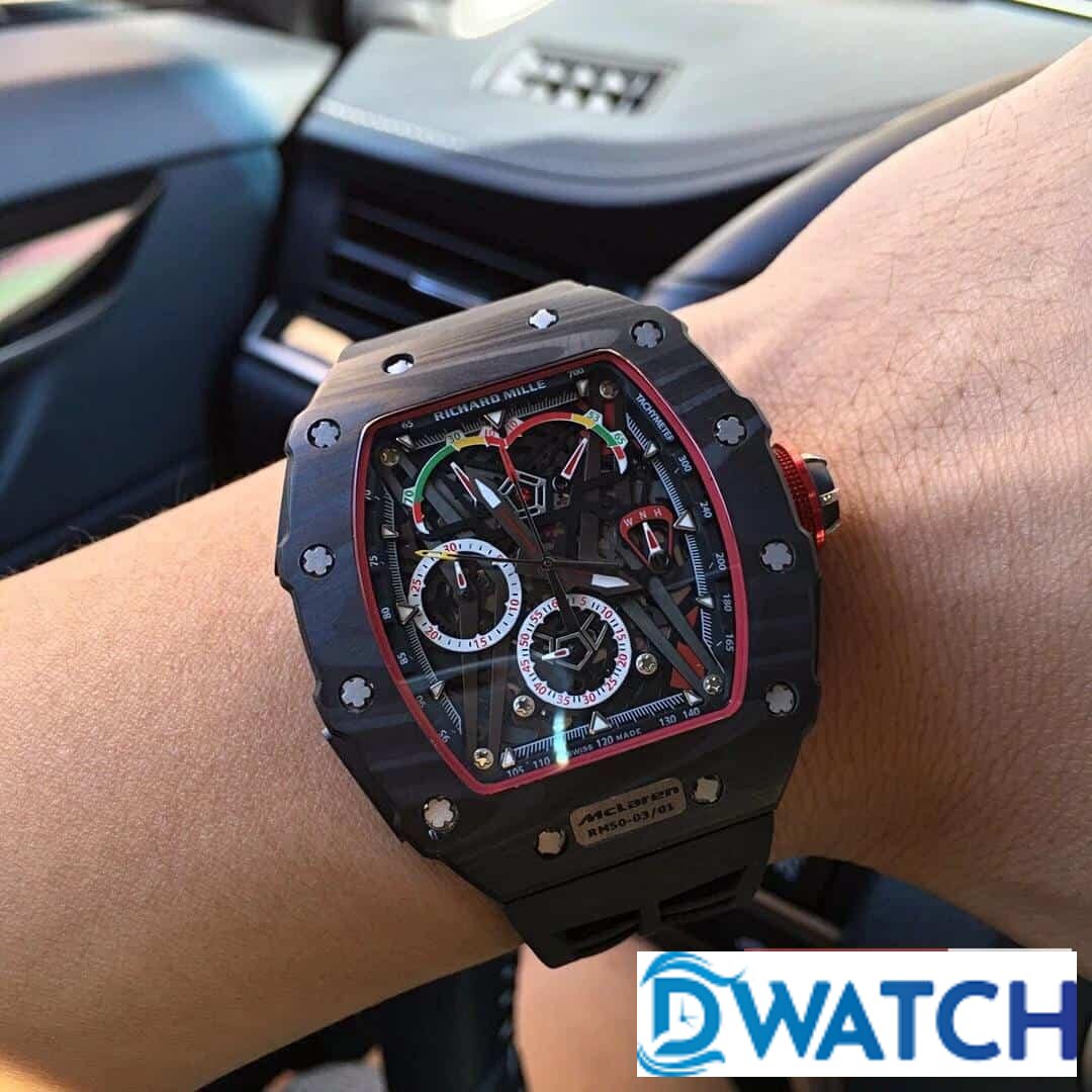 ĐỒNG HỒ NAM RICHARD MILLE RM50-03 MÀU ĐEN SỢI CARBON FAKE CAO CẤP 43X50MM