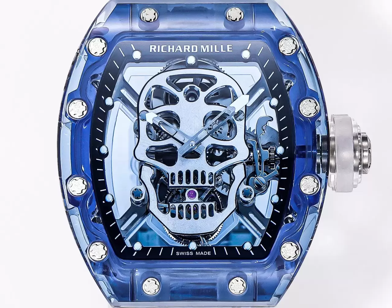 ĐỒNG HỒ RICHARD MILLE RM052 TOURBILLON CHẾ TÁC SAPPHIRE MÀU XANH REPLICA 11 ĐẦU LÂU NHÀ MÁY MS 42MM