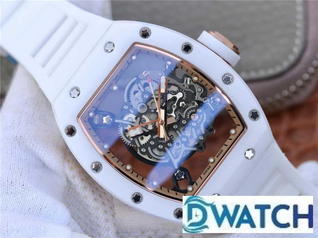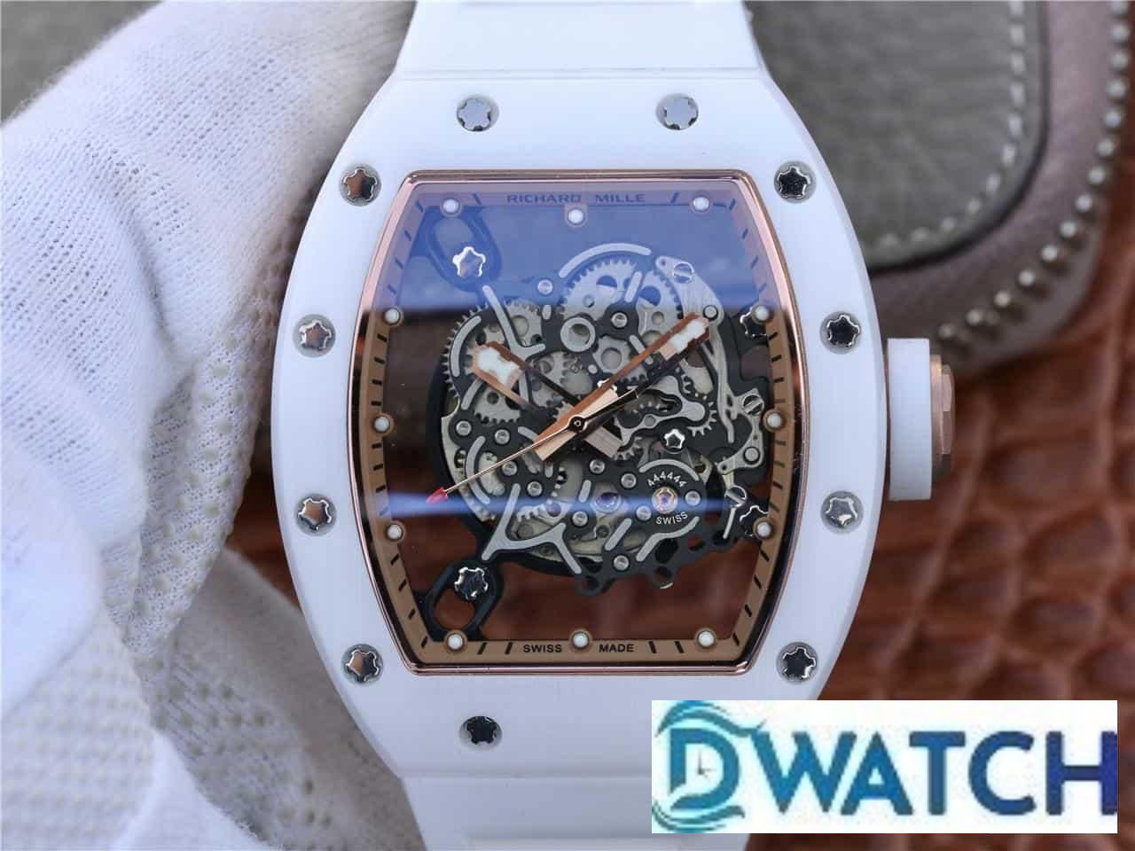 ĐỒNG HỒ NAM RICHARD MILLE RM055 SUPER FAKE DÂY CAO SU TRẮNG 44MM