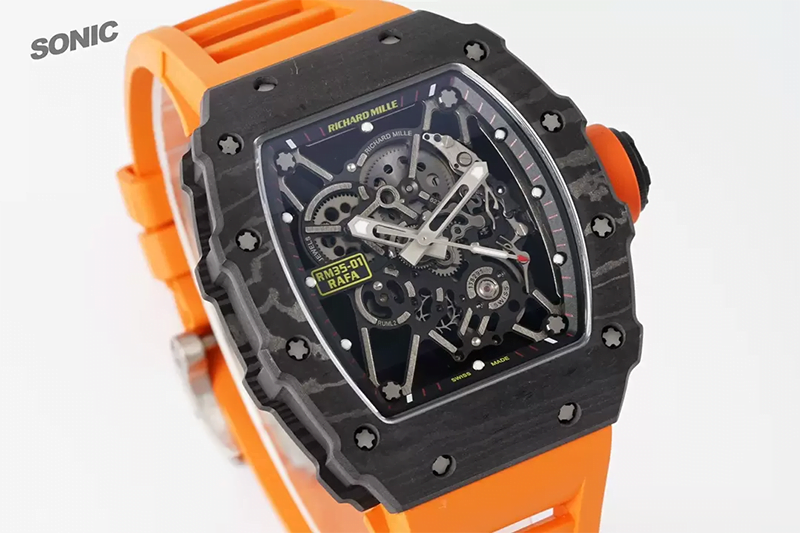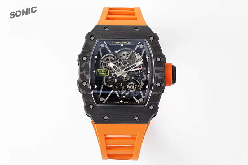 ĐỒNG HỒ RICHARD MILLE RM35-01 RAFA DÂY CAM MẶT ĐEN REPLICA 43M