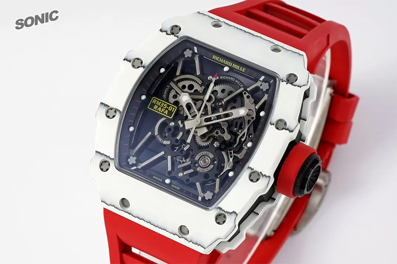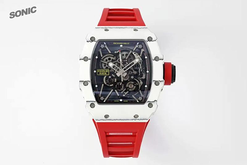 ĐỒNG HỒ RICHARD MILLE RM35-01 RAFA DÂY CAO SU ĐỎ MẶT TRẮNG REPLICA 43M