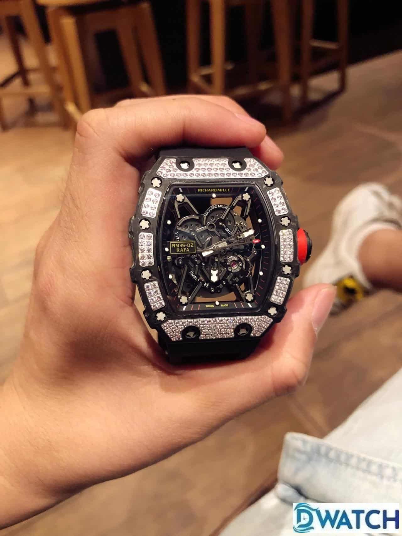 ĐỒNG HỒ NAM RICHARD MILLE RM35-02 REPLICA CAO CẤP ĐÍNH ĐÁ DÂY CAO SU ĐEN 44MM