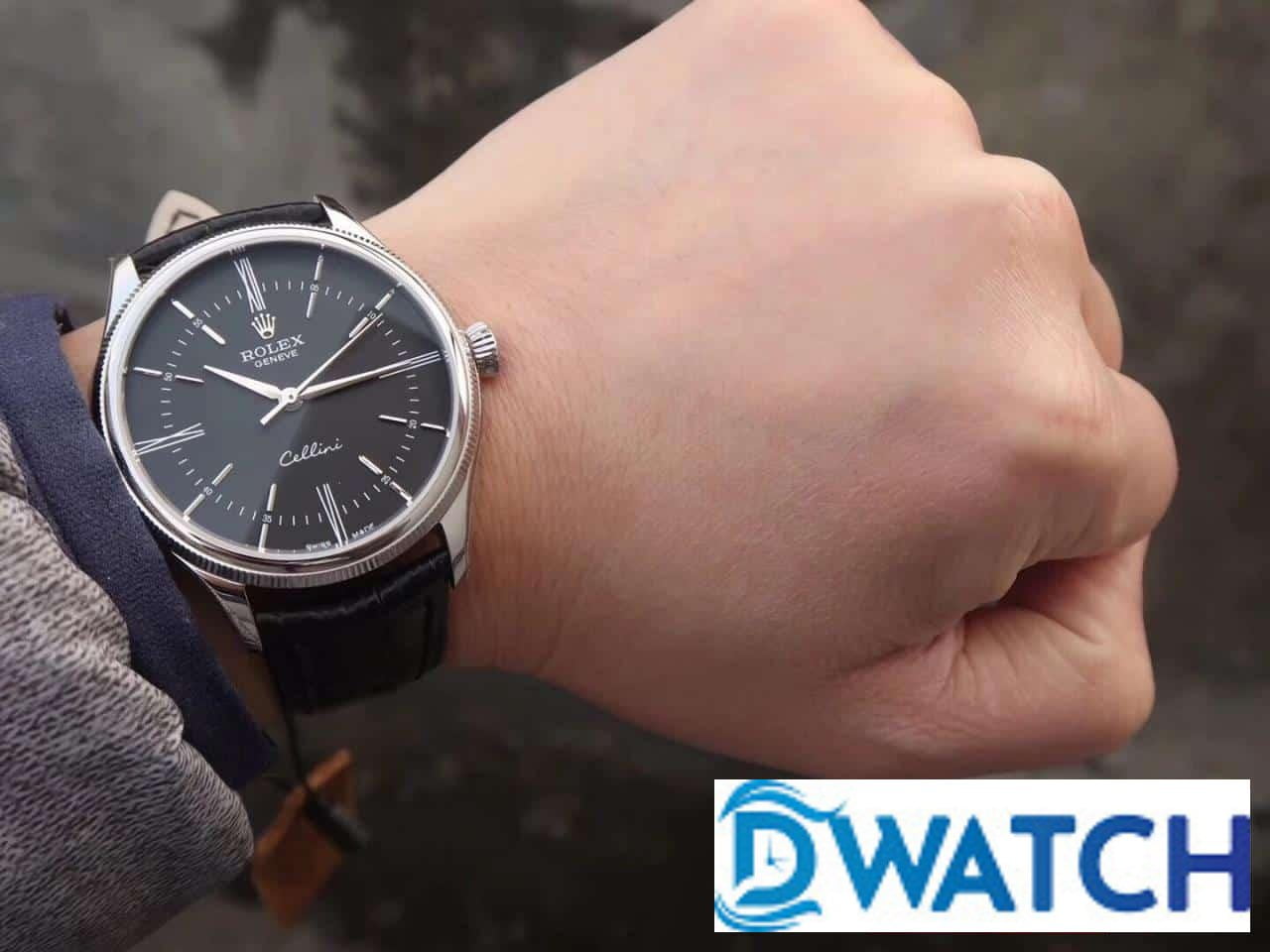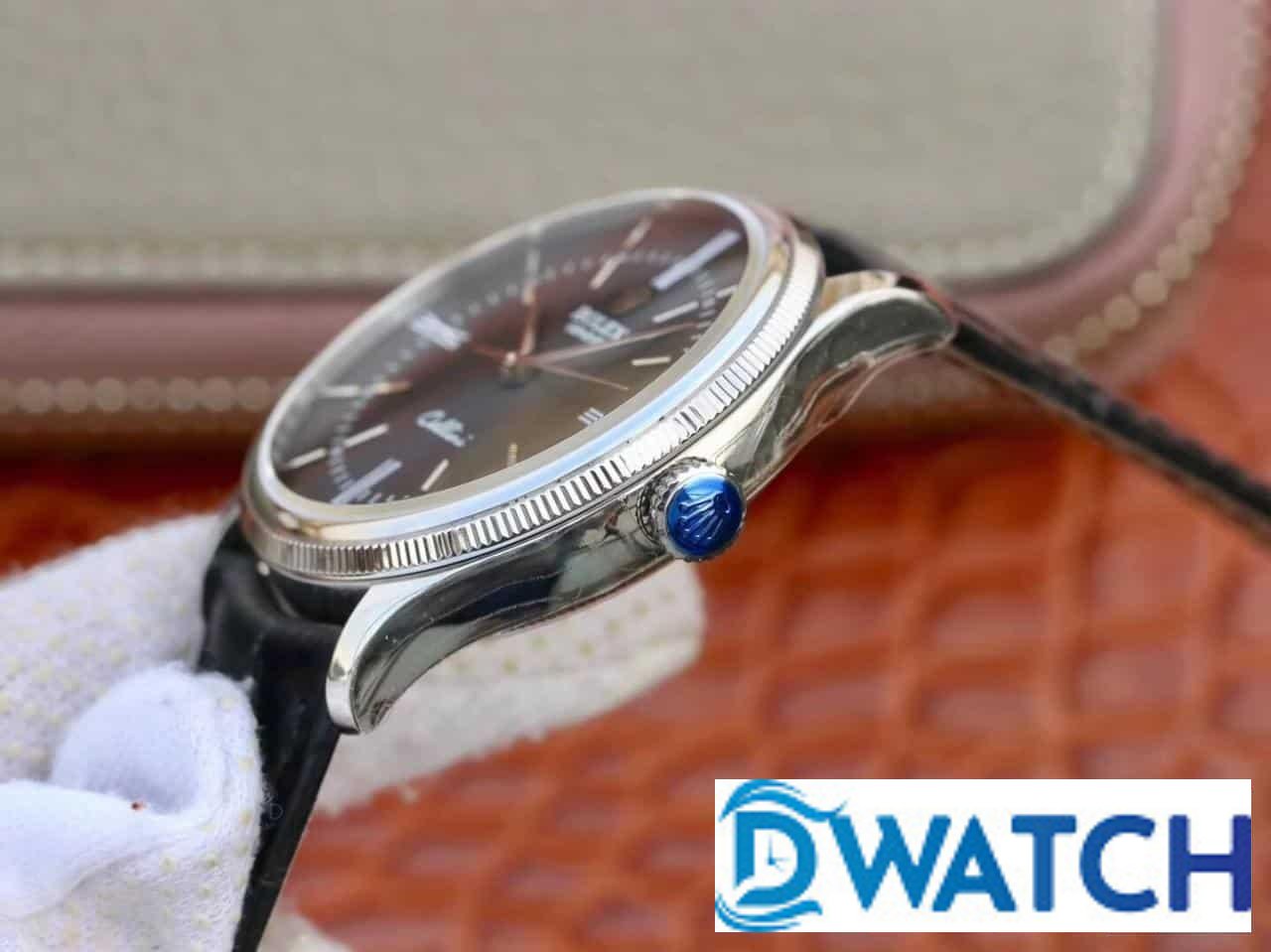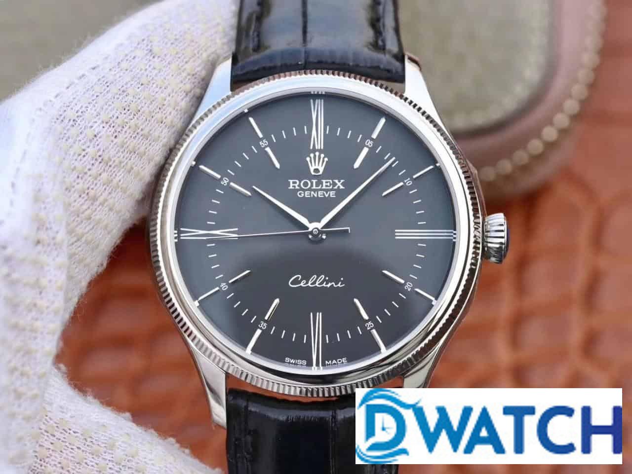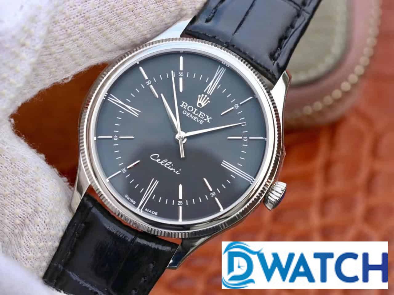 ĐỒNG HỒ ROLEX CELLINI NAM MÁY CƠ DÂY DA MẶT ĐEN FAKE 11 39MM