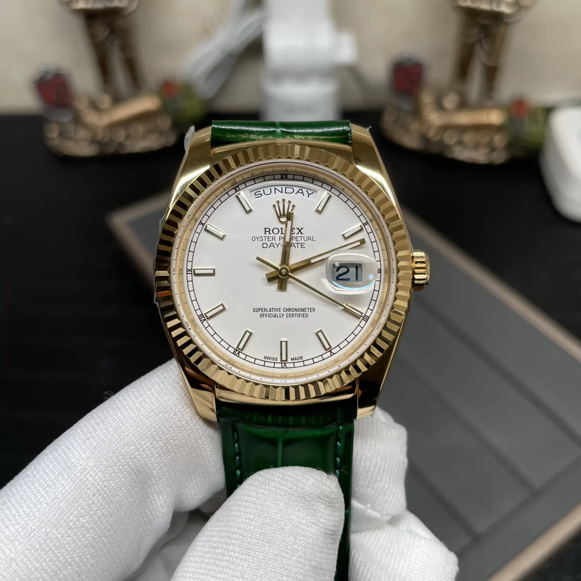ĐỒNG HỒ ROLEX DAY-DATE NAM MÁY CƠ DÂY DA REPLICA CAO CẤP 36MM