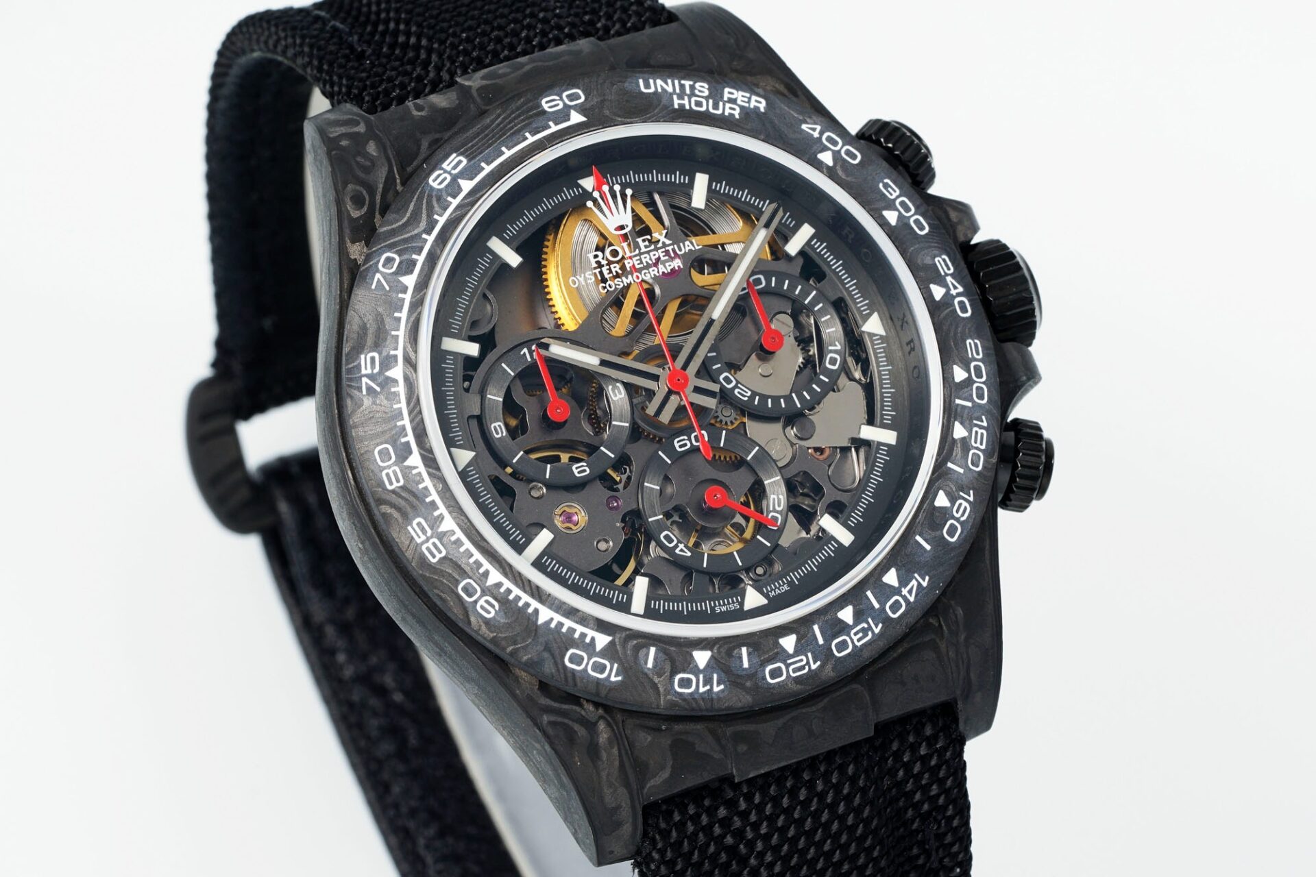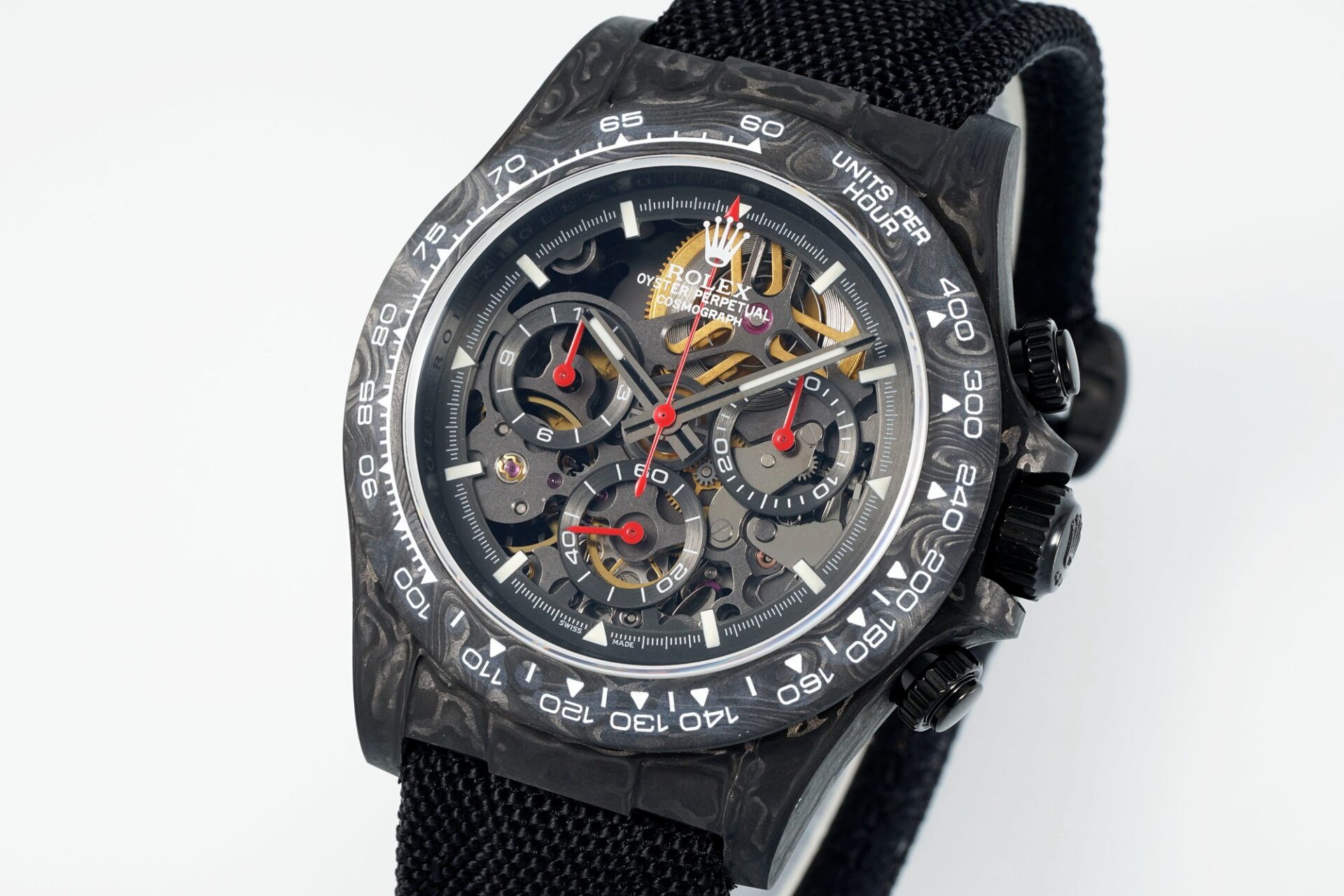 ĐỒNG HỒ ROLEX DAYTONA DIW REPLICA 11 VỎ CARBON KIM ĐỎ 40MM