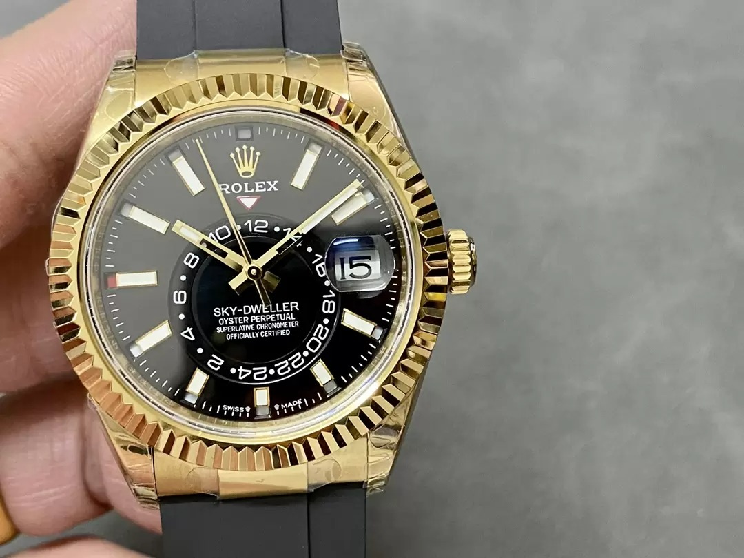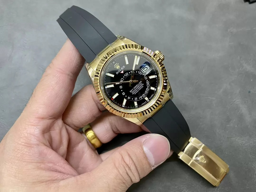 ĐỒNG HỒ ROLEX SKY DWELLER 336238 REP 11 MẶT ĐEN MẠ VÀNG DÂY CAO SU CAO CẤP 42MM