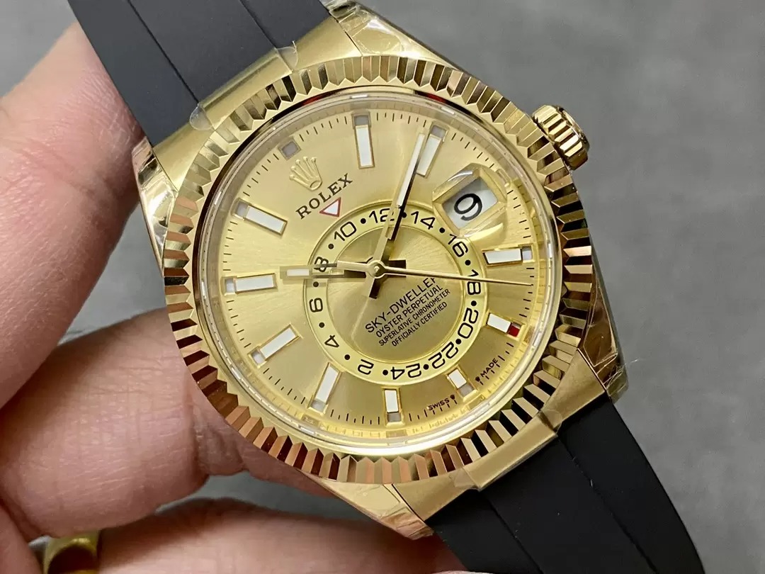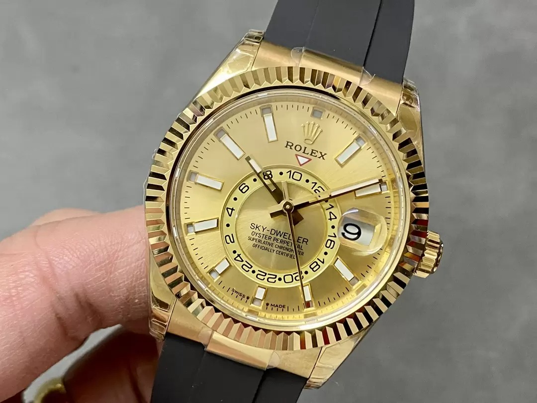 ĐỒNG HỒ ROLEX SKY DWELLER 336238 REP 11 MẶT VÀNG CỌC SỐ DẠ QUANG 42MM
