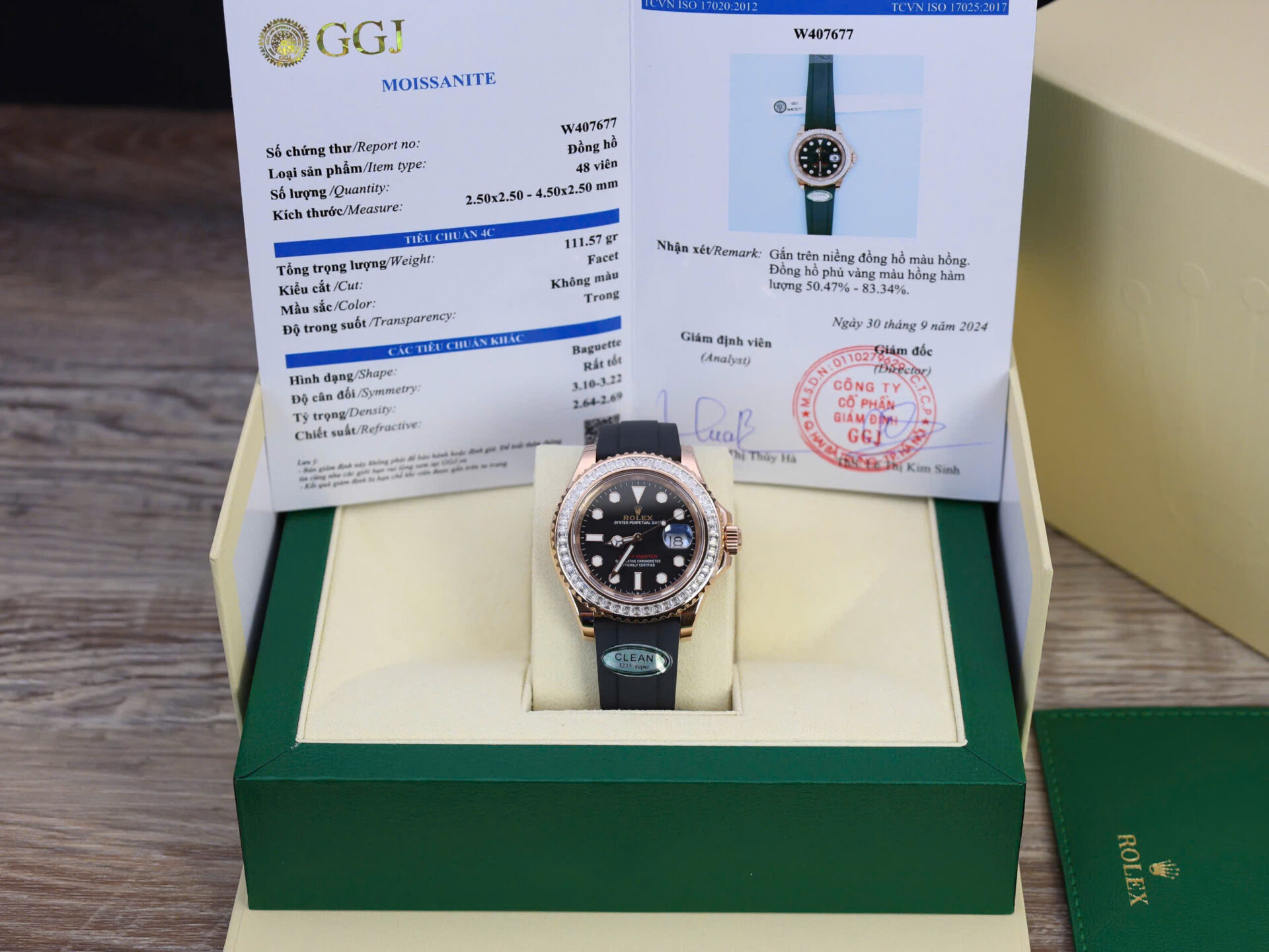 ĐỒNG HỒ ROLEX YACHT-MASTER CHẾ TÁC BỌC VÀNG MOISSANITE BAGUETTE CLEAN 40MM