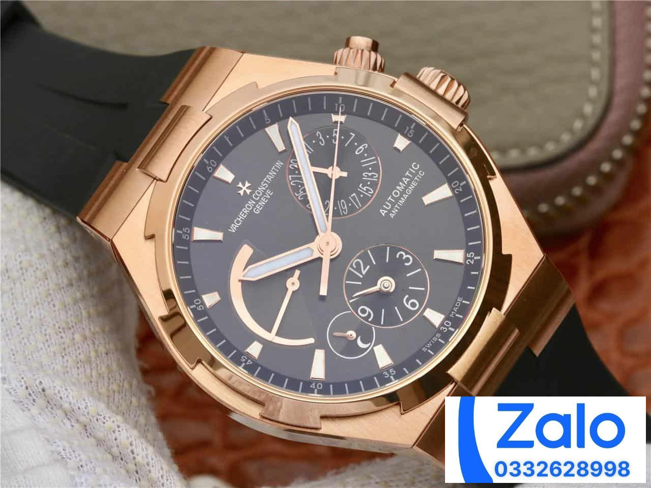 ĐỒNG HỒ VACHERON CONSTANTIN FAKE 1:1 NHÀ MÁY TWA DÂY CAO SU ĐEN 42MM