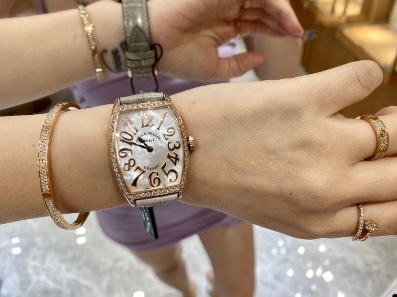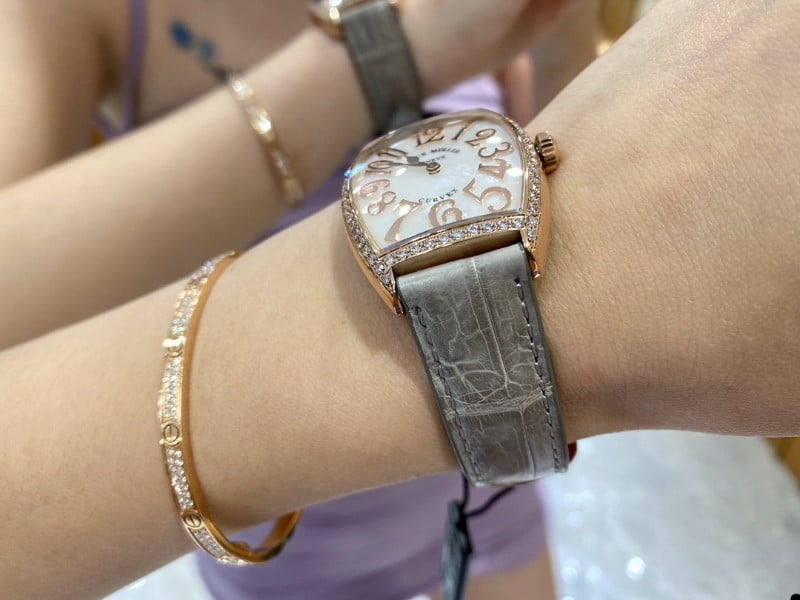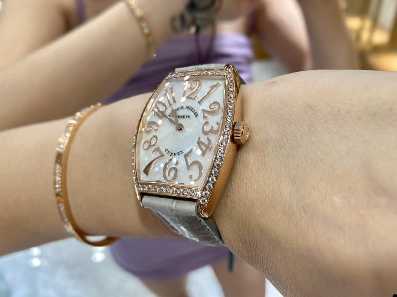 ĐỒNG HỒ VÀNG HỒNG DÂY DA CÁ SẤU NỮ CINTRÉE CURVEX 2852 FRANCK MULLER 43MM