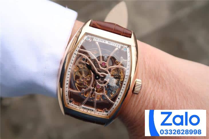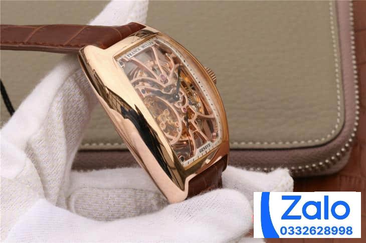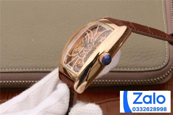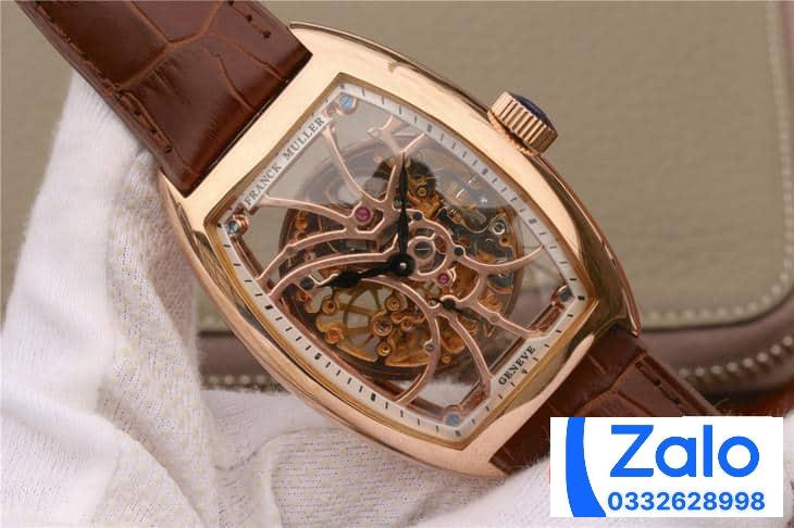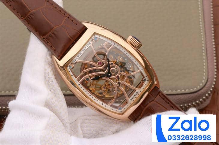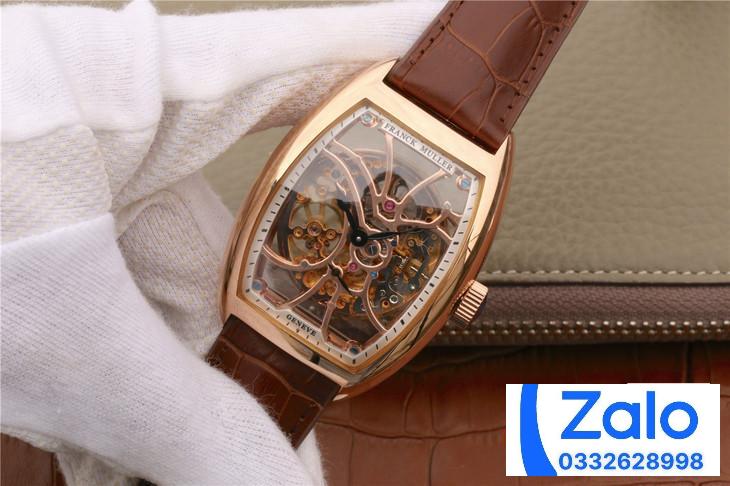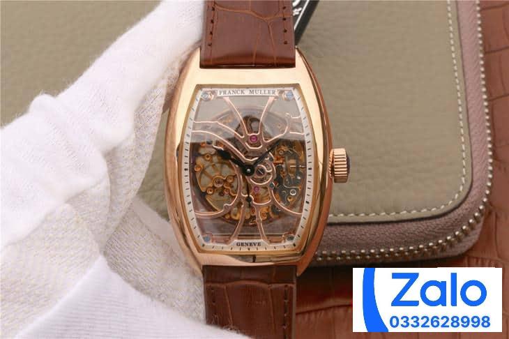 FRANCK MULLER SKELETON ROSE GOLD BEST REPLICA WATCH BROWN LEATHER STRAP 39.5x55MM