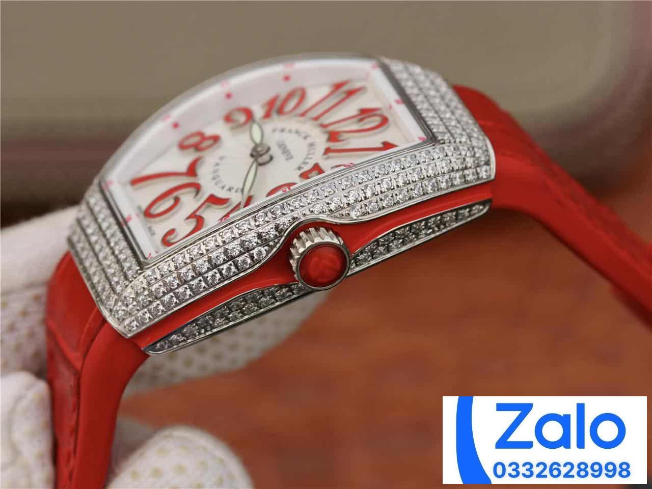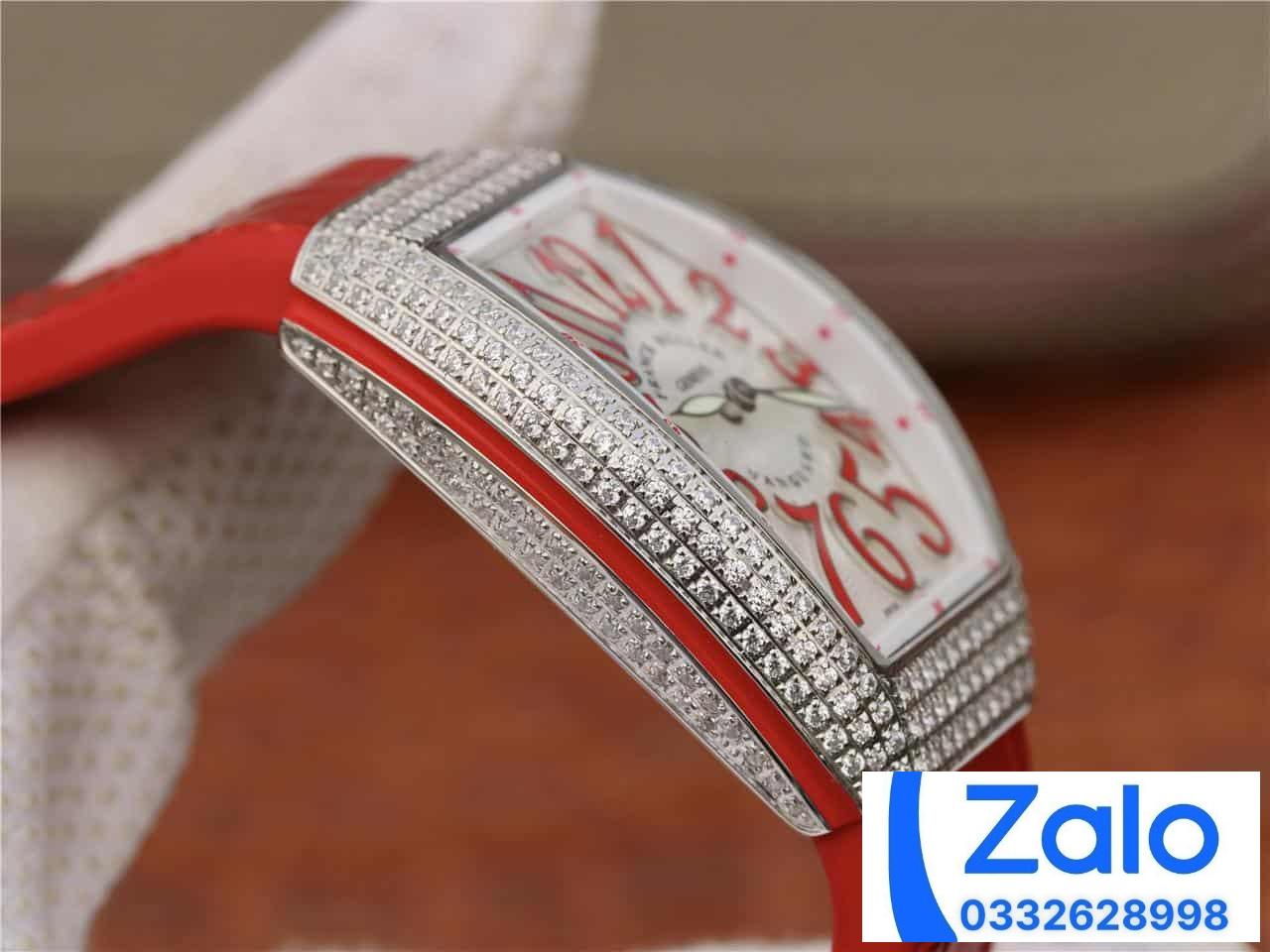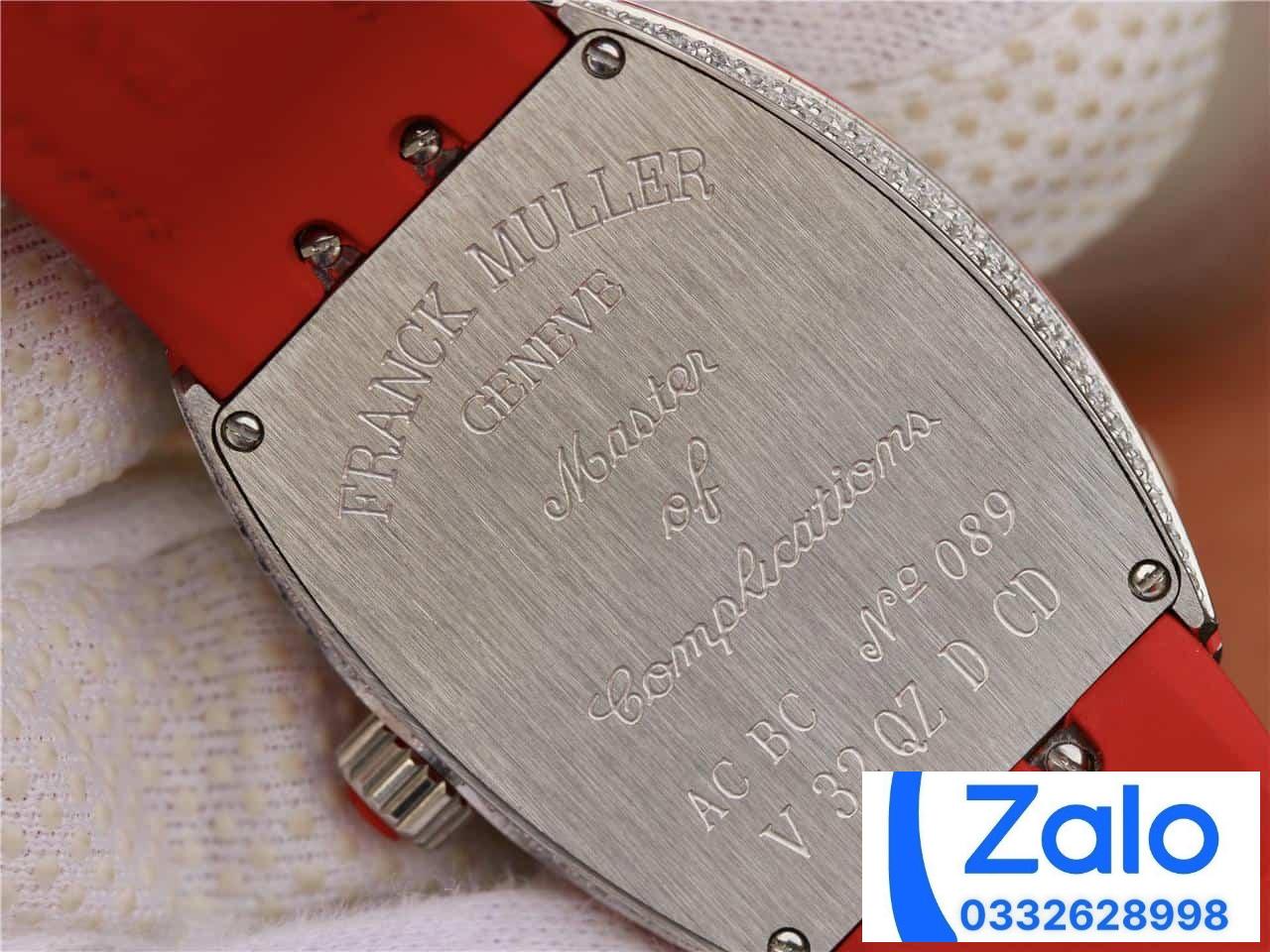 FRANCK MULLER V32 COPIES WATCHES RED DIAL RUBBER STRAP RHINESTONE ABF FACTORY 36MM