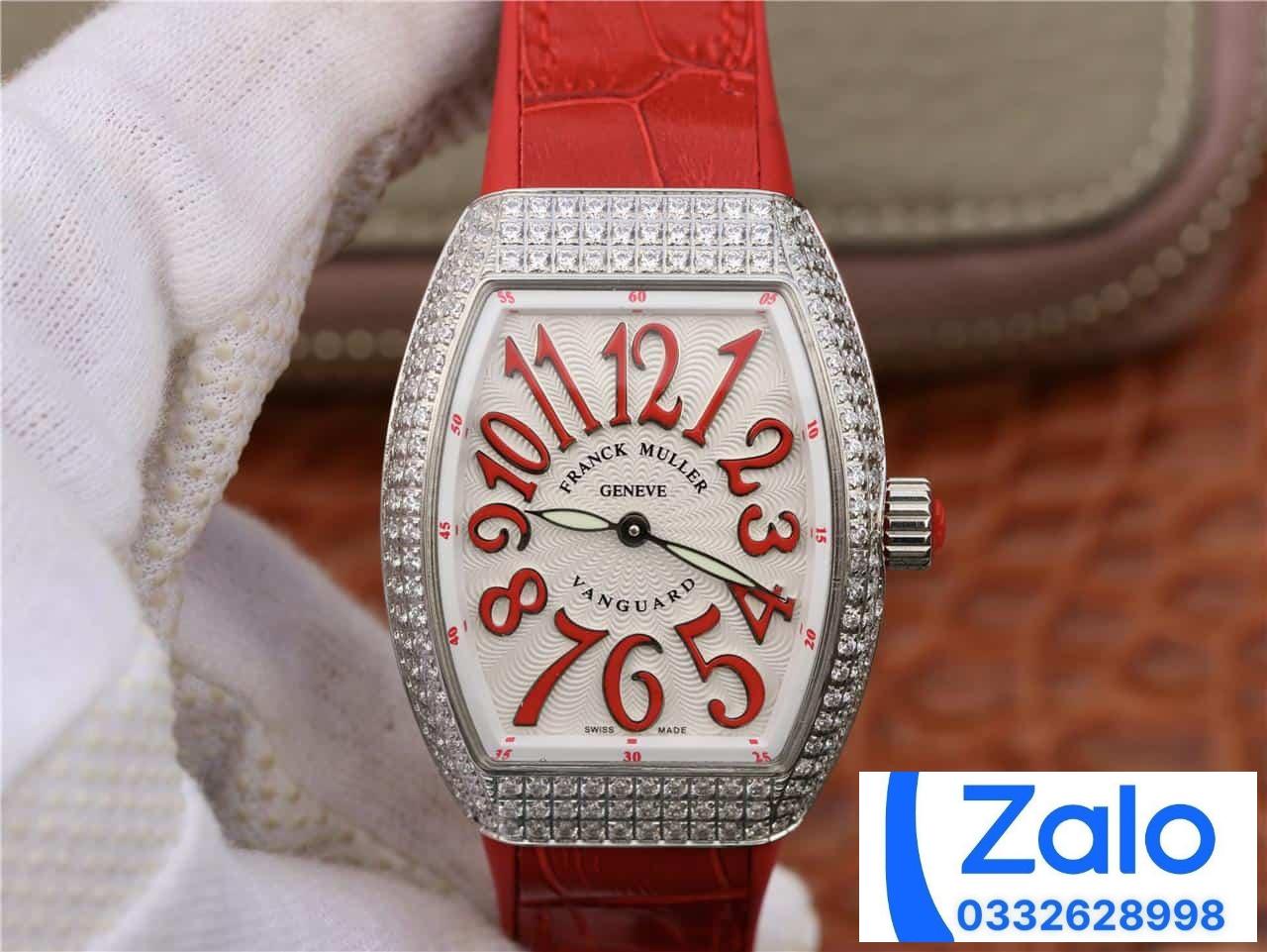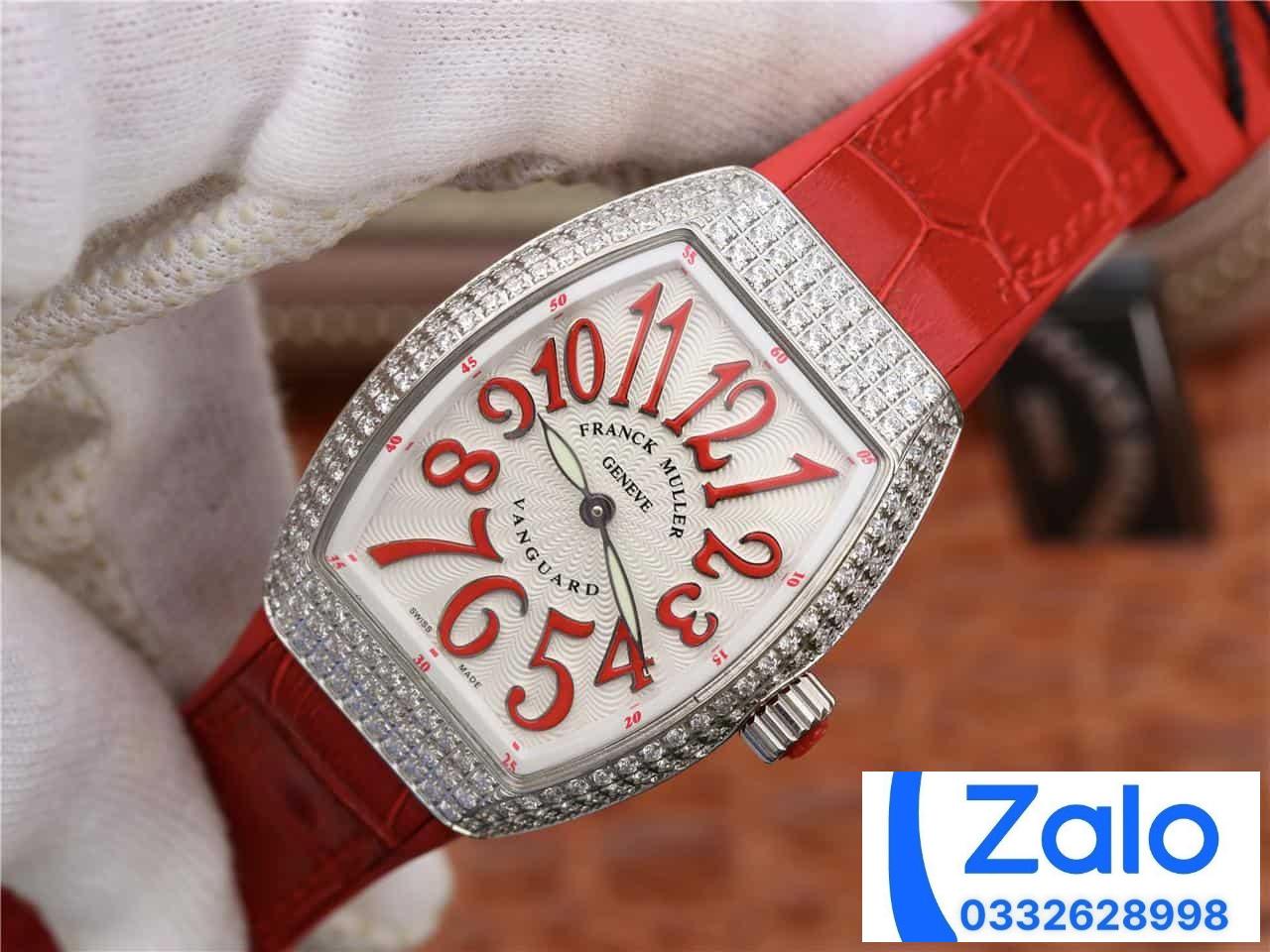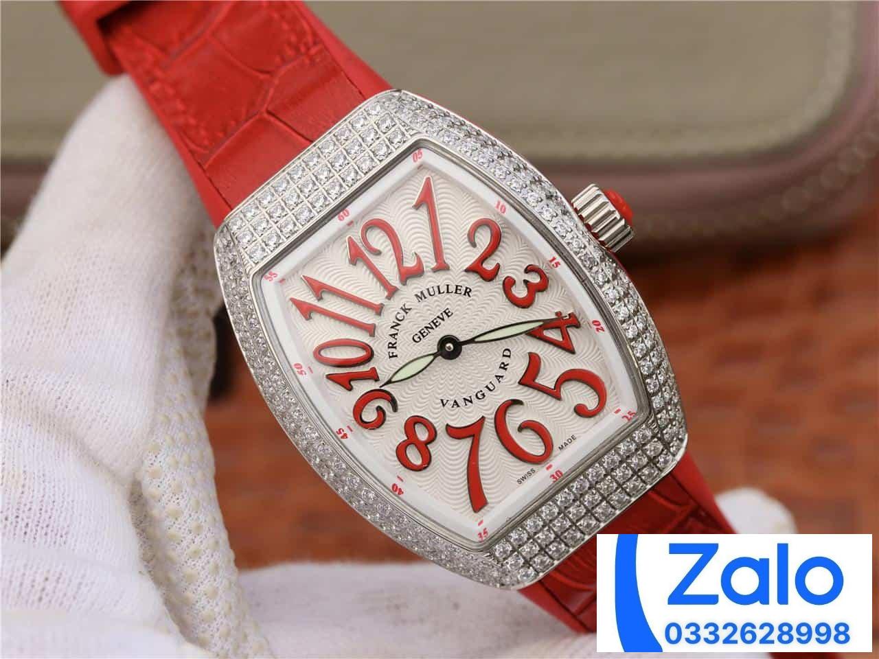 FRANCK MULLER V32 COPIES WATCHES RED DIAL RUBBER STRAP RHINESTONE ABF FACTORY 36MM