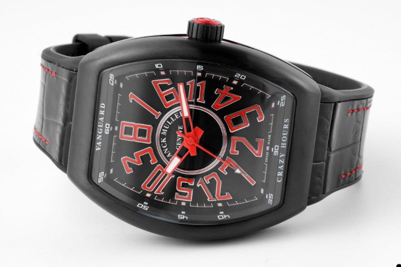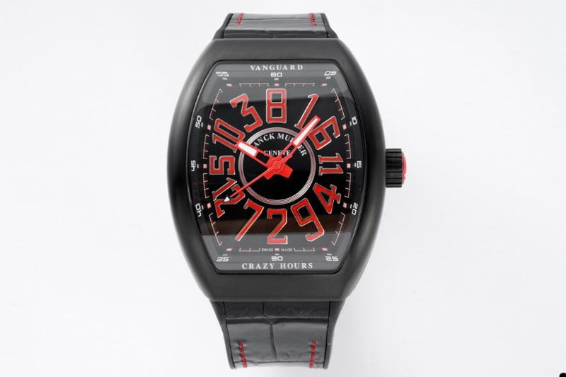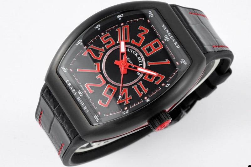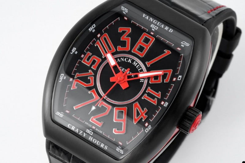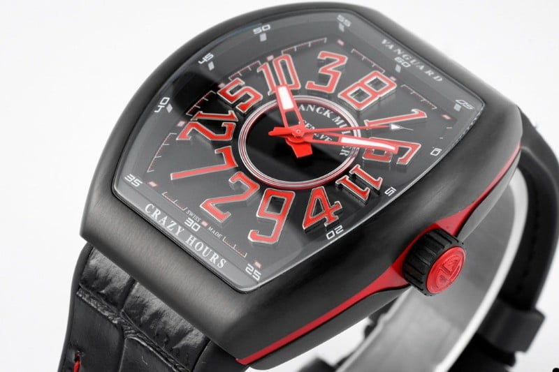 FRANCK MULLER VANGUARD V45 CRAZY HOURS HIGH END REPLICA WATCHES BLACK CASE RED HOURS ABF FACTORY 44MM